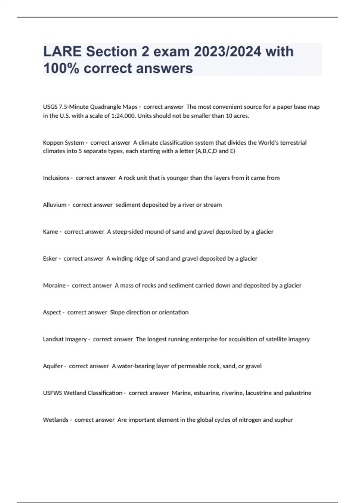 LARE Section 3 exam 2024 with 100% correct answers LARE - Practice Exam B 2024 with 100% correct answers