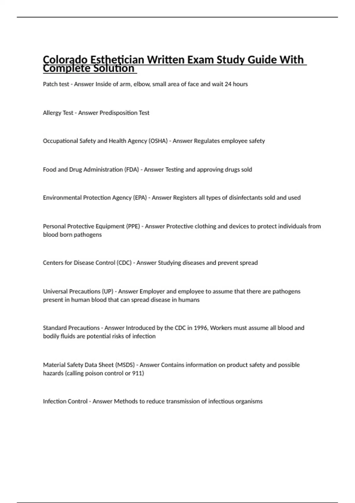 1 Colorado Esthetician Written Exam 2024 Questions & Answers Solved 100%