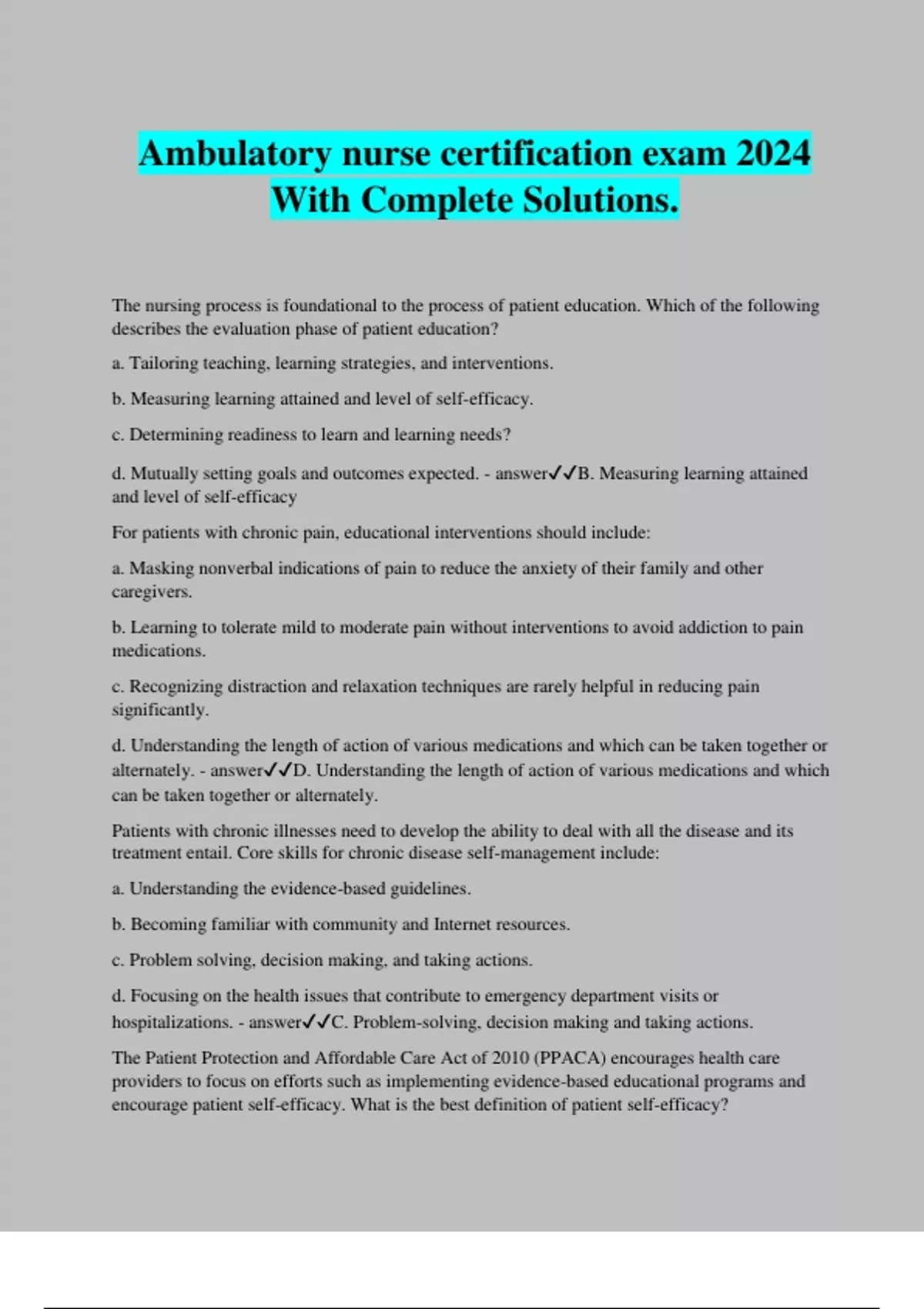 Ambulatory Nursing Certification Exam Questions And Answers.