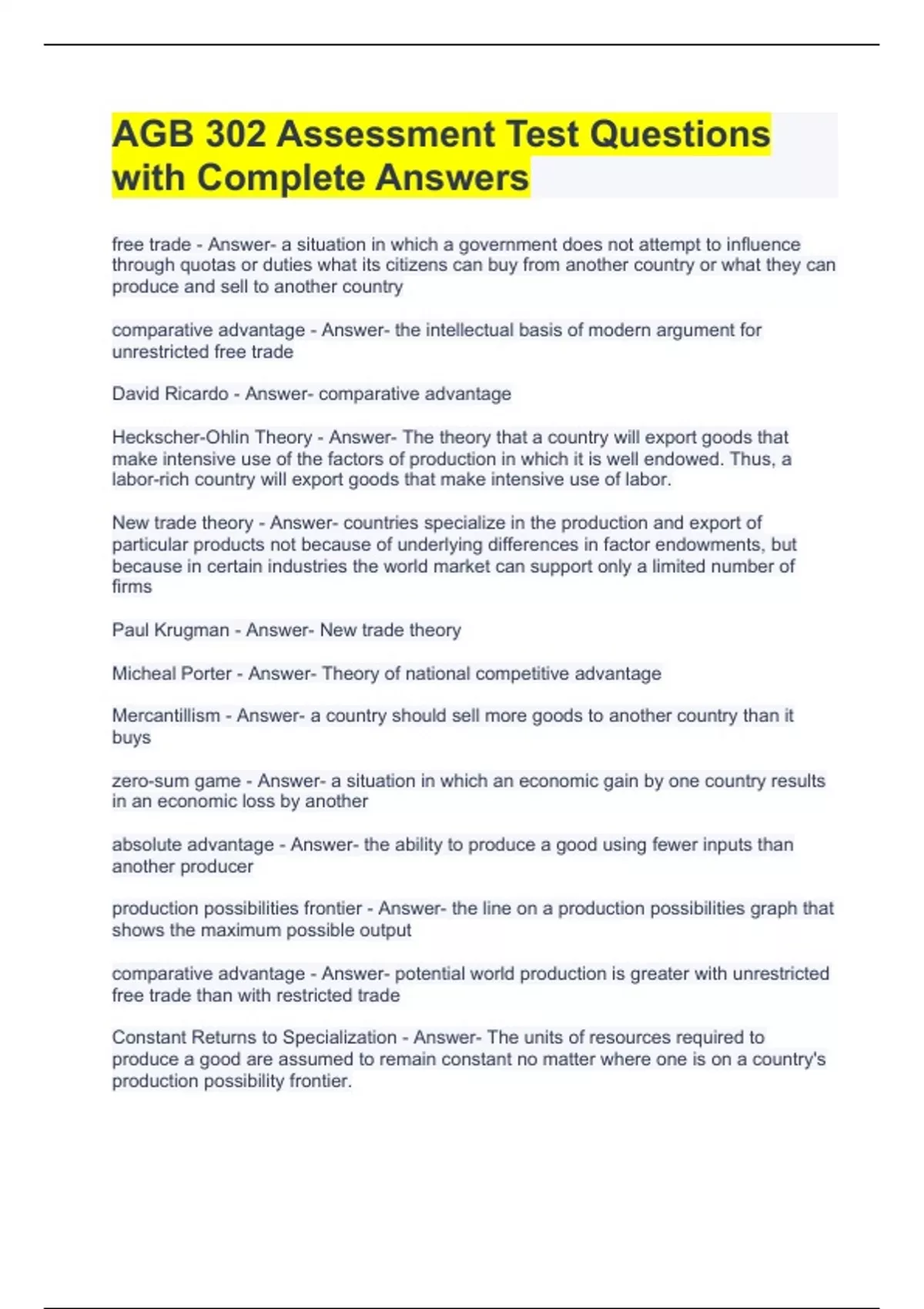 Exam (elaborations) AGB ASSESSMENT TEST EXAM 2023 QUESTIONS WITH COMPLETE SOLUTIONS Exam (elaborations) AGB 302, Ch 10 Exam Questions with Complete Answers (A+ Graded) Exam (elaborations) AGB 302 Quiz Questions and Answers Exam (elaborations) AGB 302 QUIZ 5 Exam Questions with 100% Correct Answers Exam (elaborations) AGB 302 Quiz 4 Questio