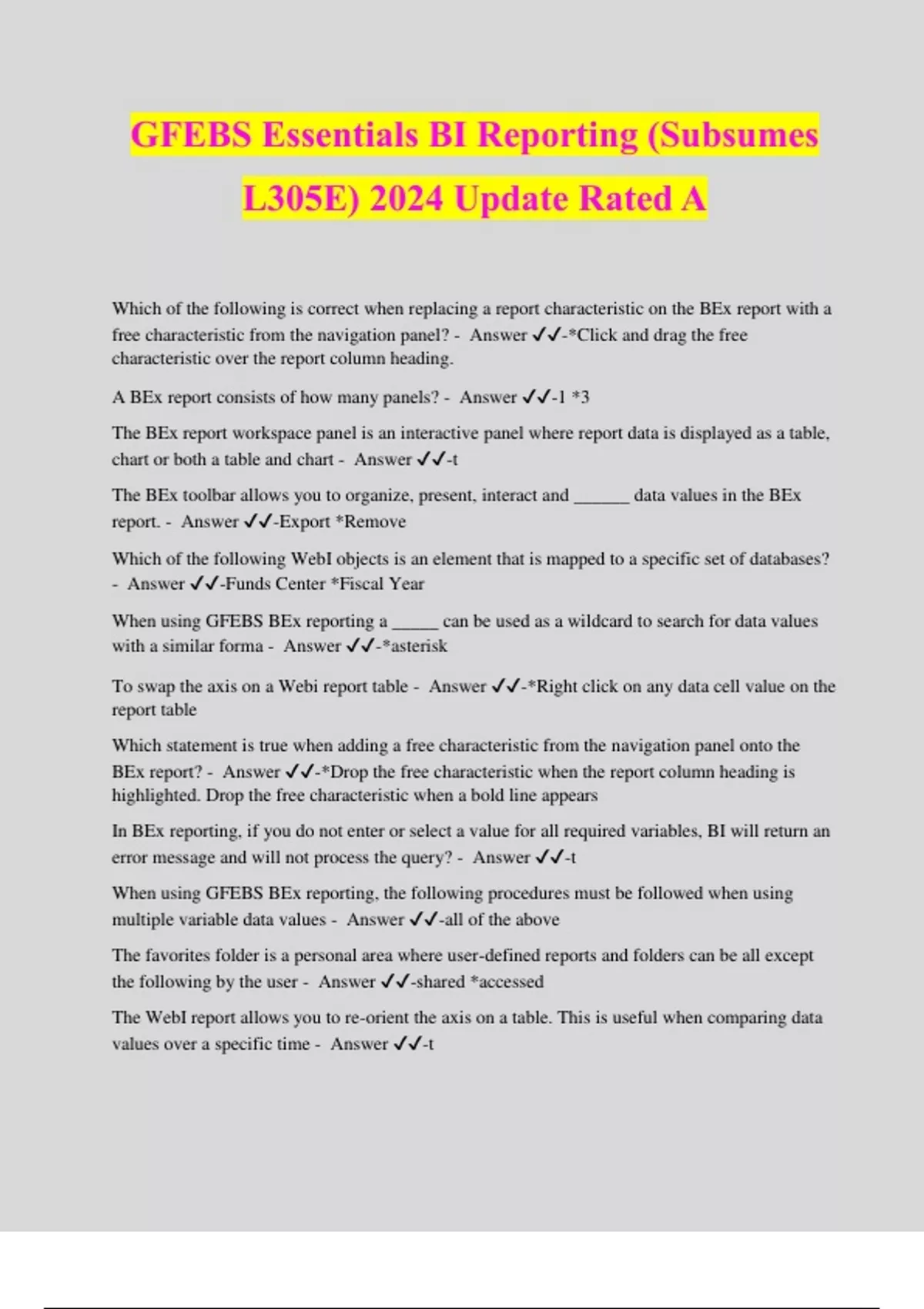 GFEBS Bundled Exams Questions and Answers | 100% Verified and Updated 2024 | All Graded to Qualify!!
