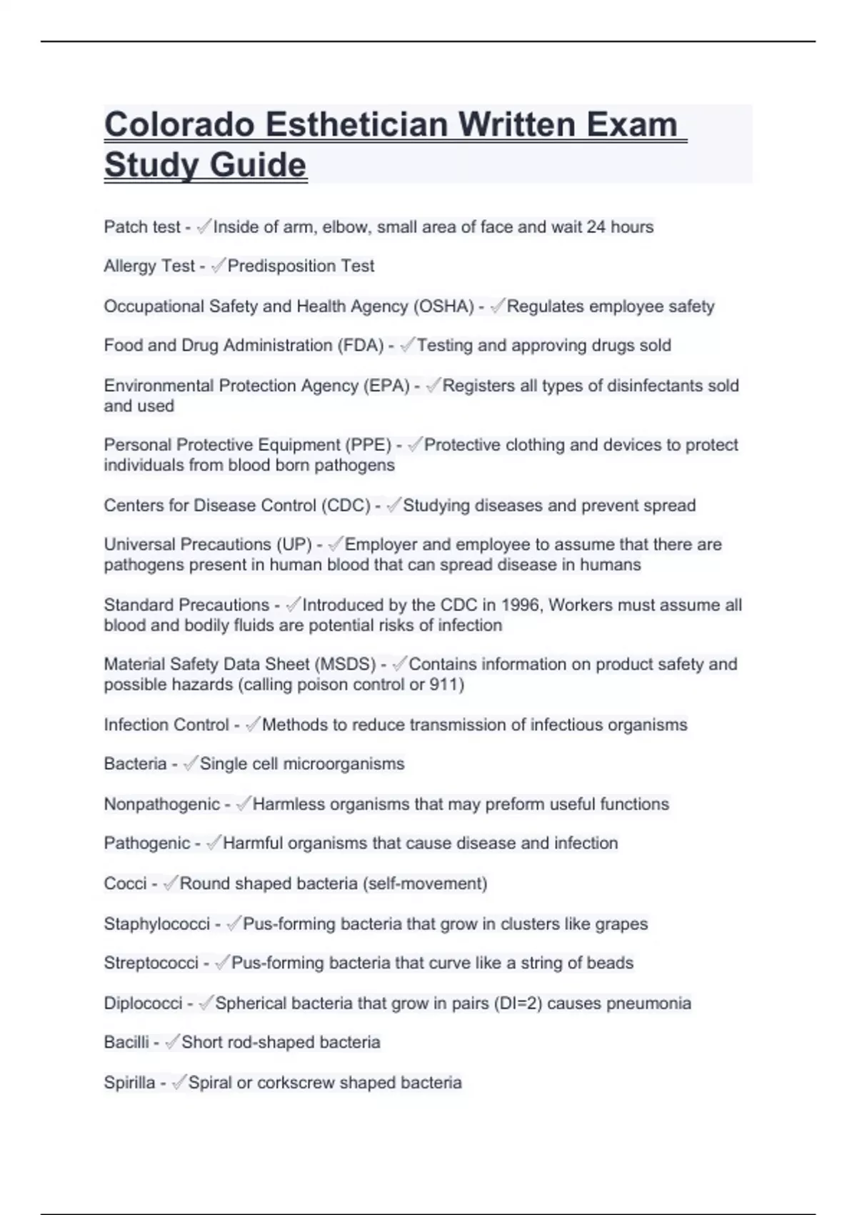 Colorado Cosmetology Written ExamS ,TESTS AND STUDY GUIDES 2024