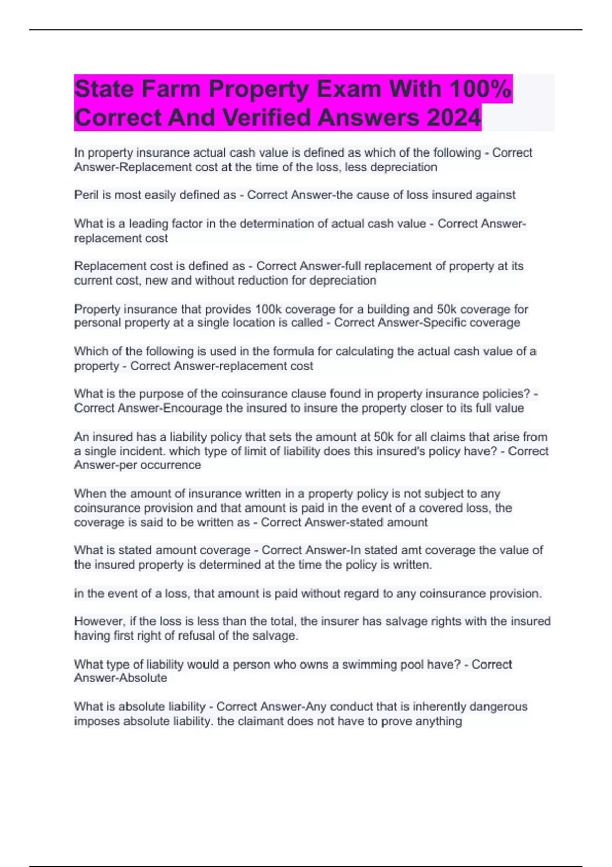 State Farm License Exam | Latest Update | 100% Correct | Verified Answers State Farm Casualty Exam With 100% Correct And Verified Answers 2024 State Farm Auto Booklet Exam With 100% Correct And Verified Answers State Farm Auto External Claim Resource Certification Exam With 100% Correct And Verified Answers 2024 1