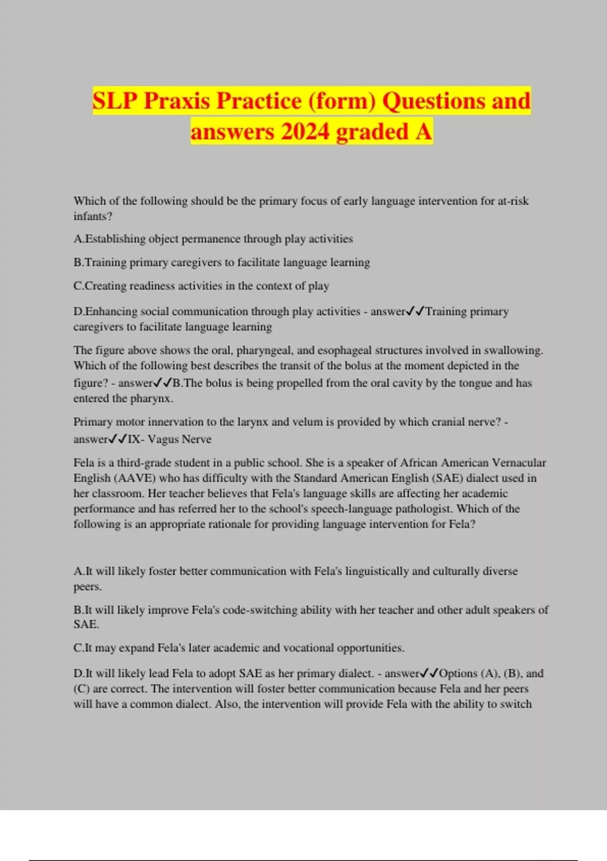 SLP Praxis Practice (Form 2) Questions and answers graded A