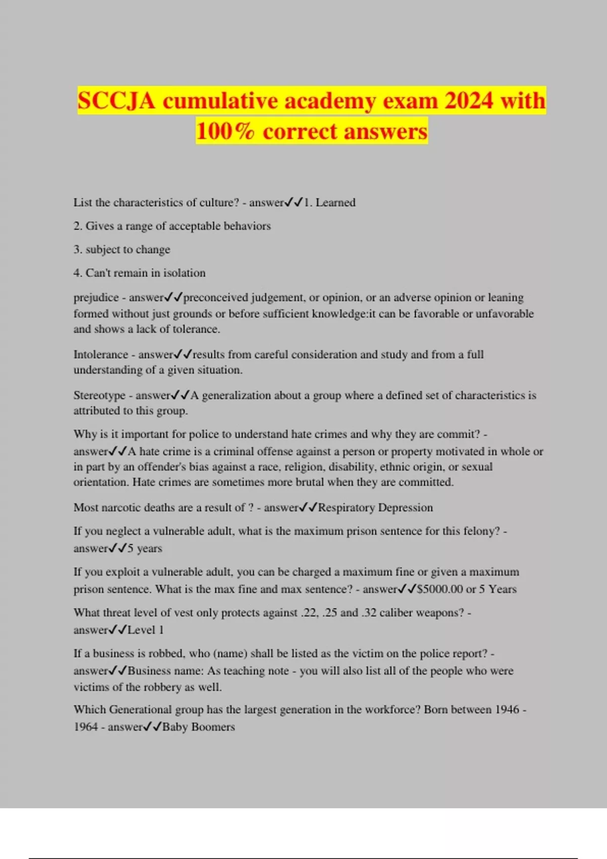 SCCJA cumulative academy exam 2024 with 100% correct answers