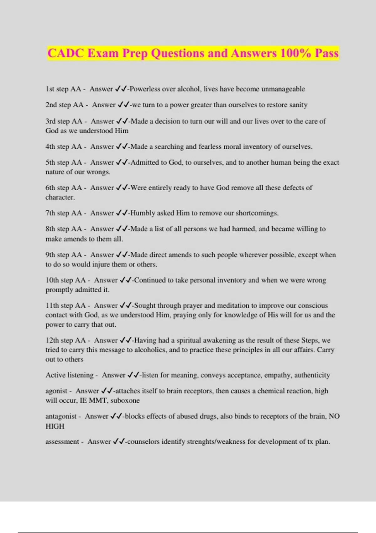 CADC Exam Prep Questions and Answers 100% Pass