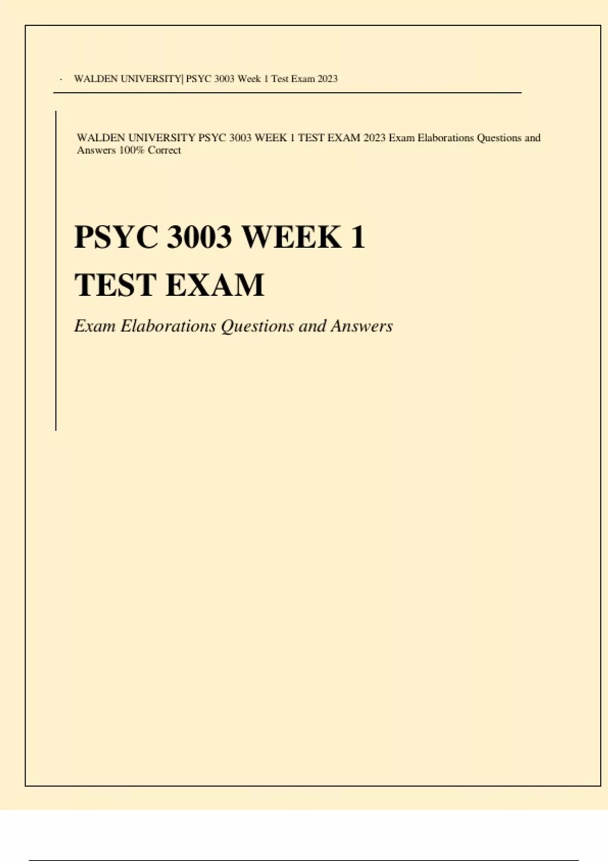 WALDEN UNIVERSITY PSYC 3003 WEEK 1 TEST EXAM Exam Elaborations Questions and Answers Latest Verified Review 2024 Practice Questions and Answers for Exam Preparation, 100% Correct with Explanations, Highly Recommended, Download to Score A+