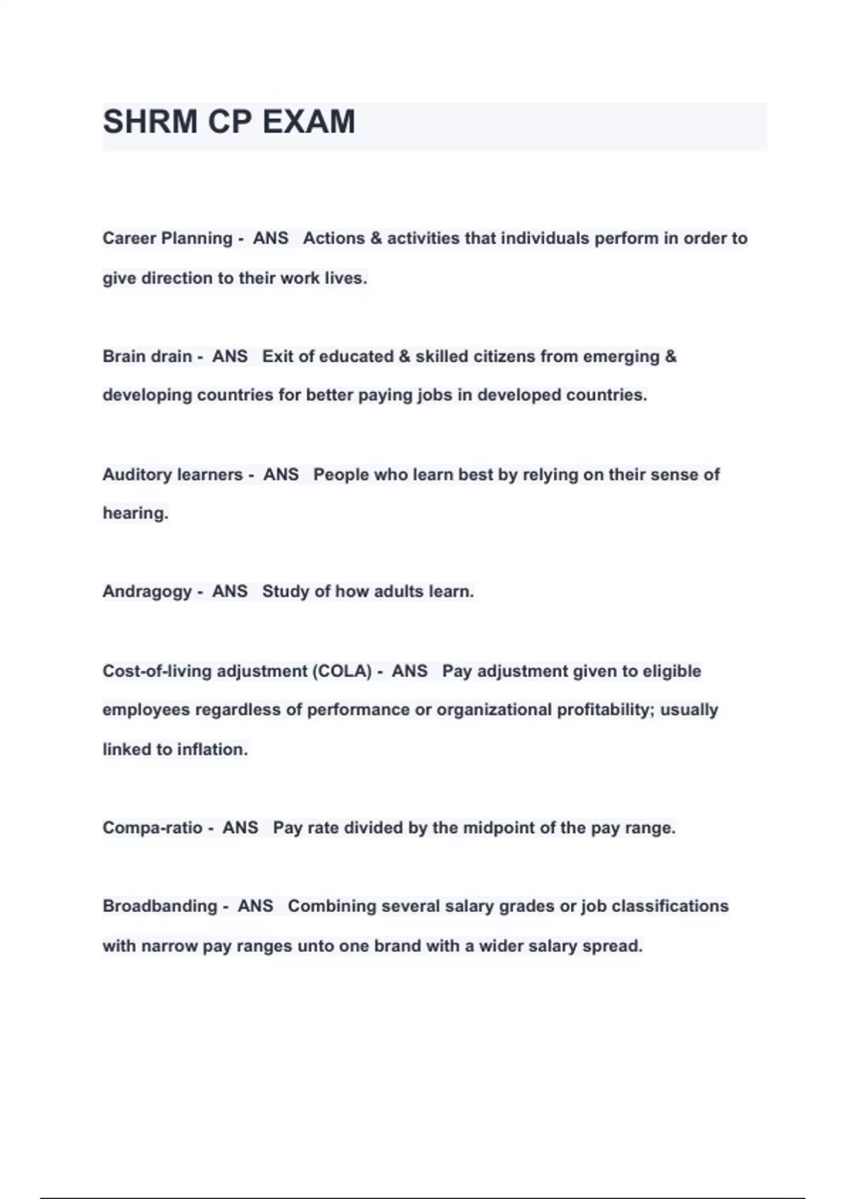 SHRM-CP EXAMS|| ACTUAL EXAMS|| ACTUAL TESTS|| FULL PACKAGED SOLUTION 2024 ( A+ GRADED 100% VERIFIED)