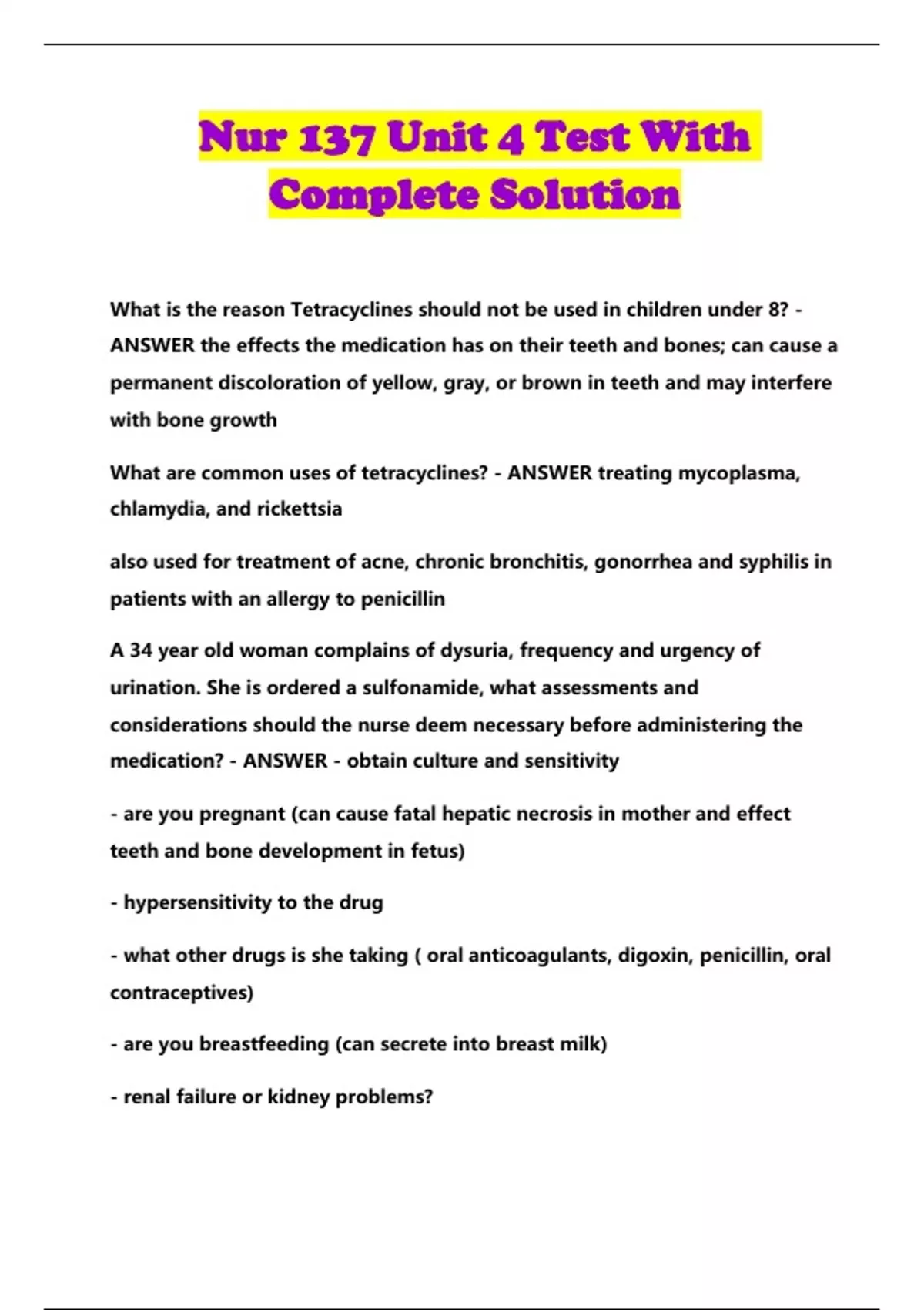 Nur 137 Unit 4 Test With Complete Solution