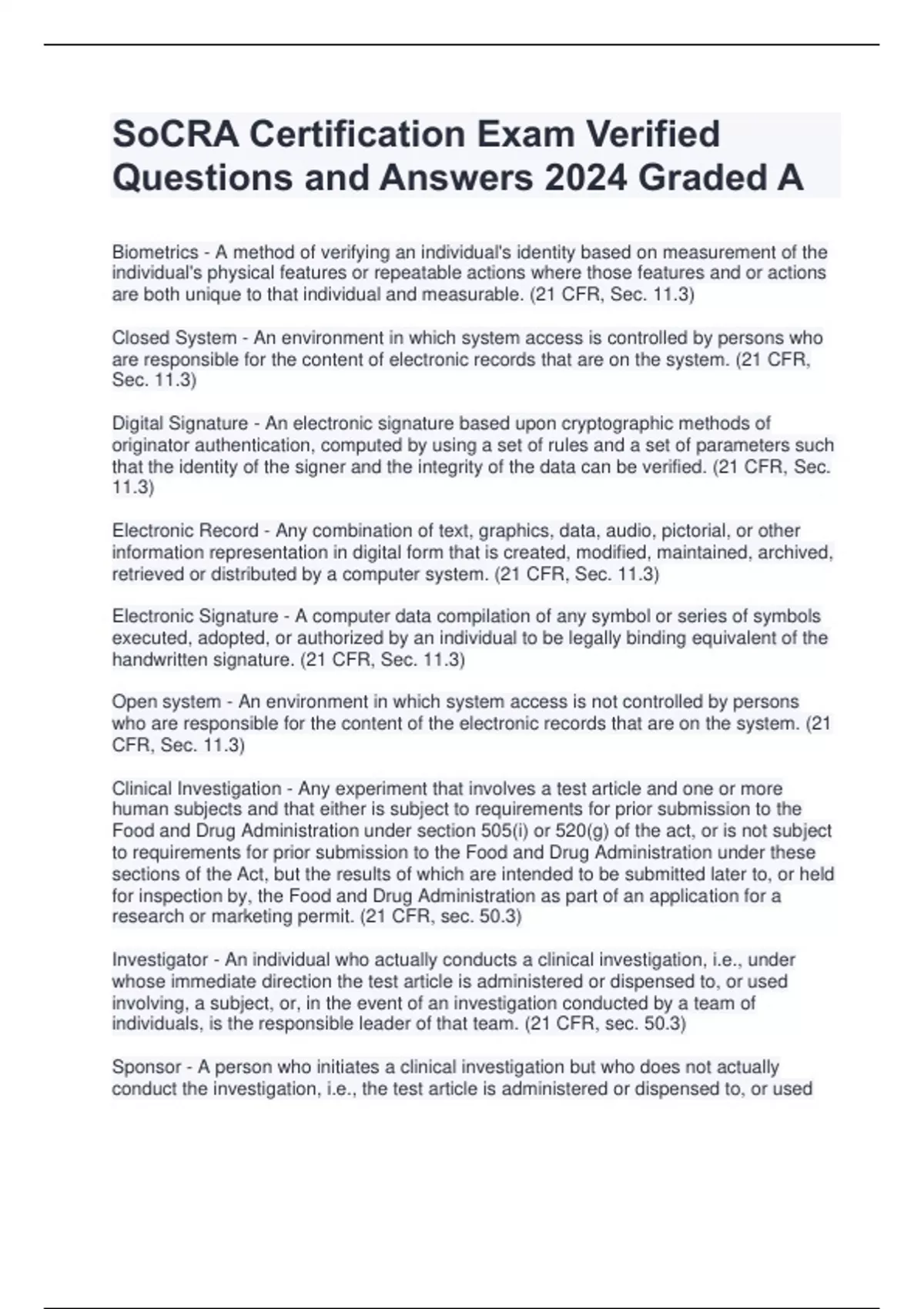 Package Deal For SOCRA Practice Test Questions with Verified Answers Top-Rated 2024