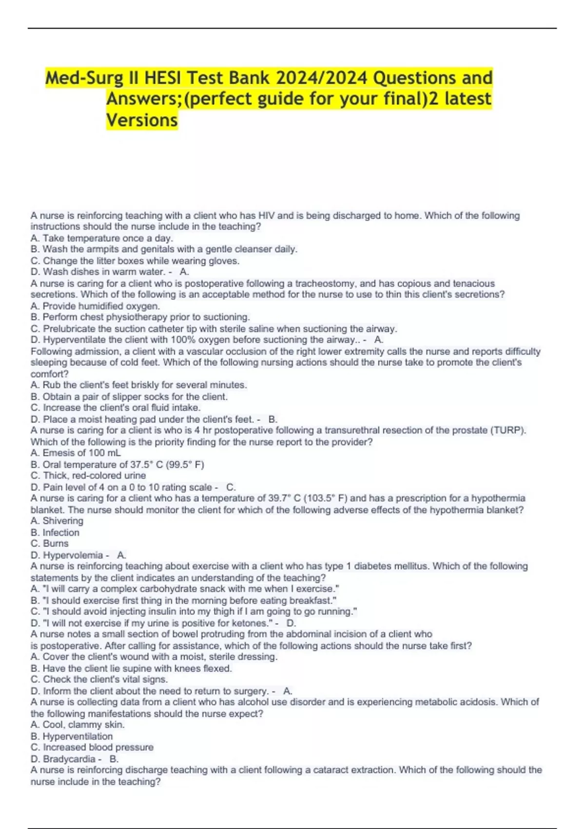 Pakage for ATI MED Surg Proctored Exam 2020/2021(Complete Version) Latest Update With 100% Solution/A GRADE bundle