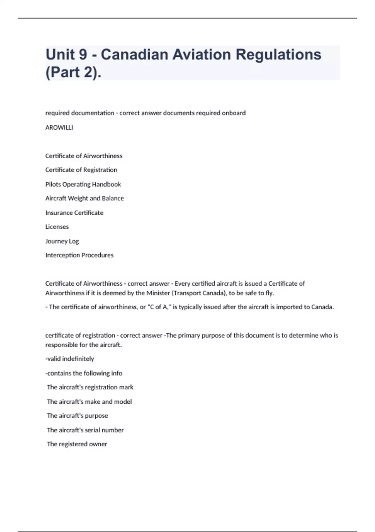 PACKAGE DEAL OF CANADIAN AVIATION QUESTIONS WITH COMPLETE SOLUTION 2023/2024
