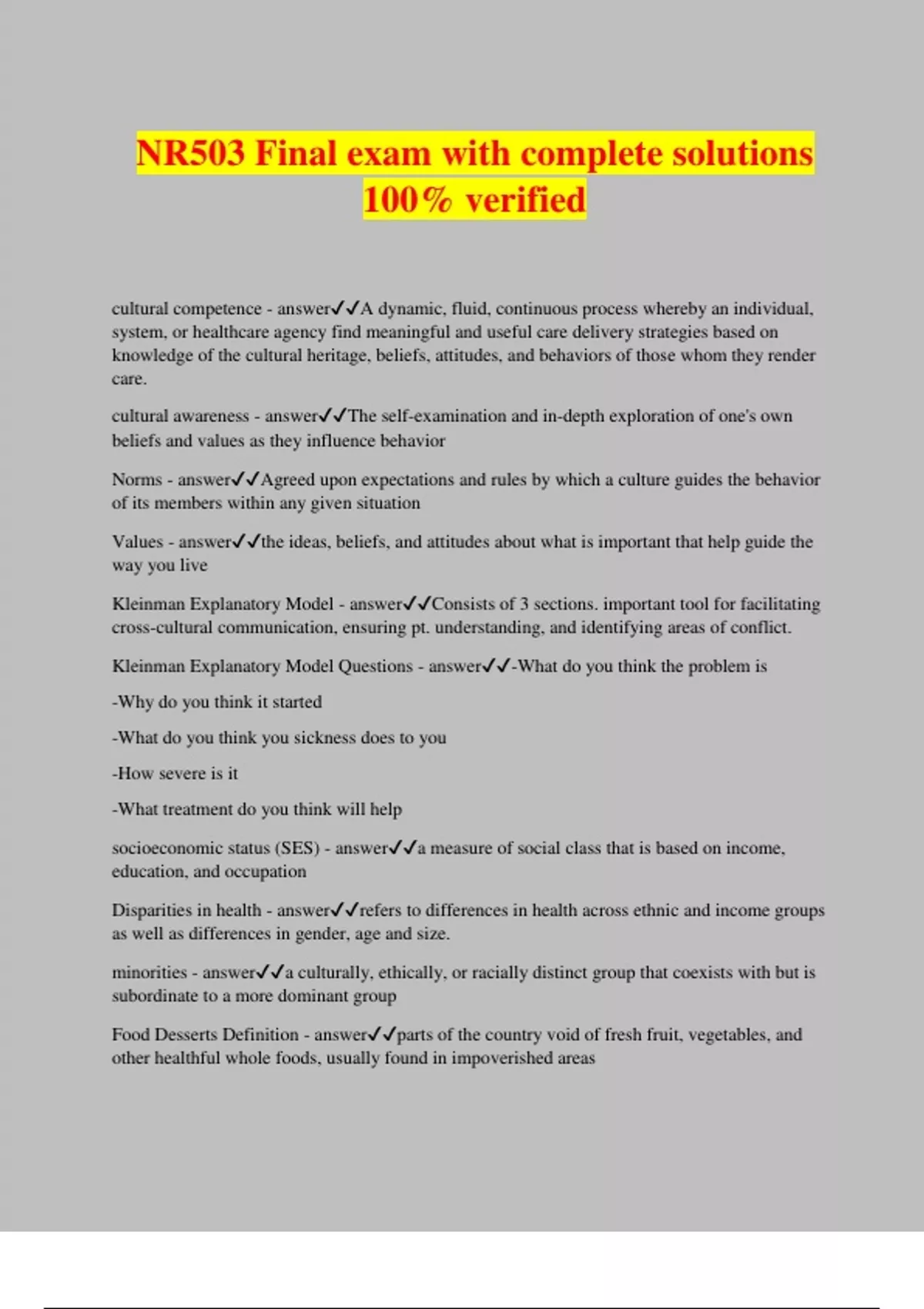 PACKAGE DEAL FOR NR 503 EXAM WITH COMPLETE AND VERIFIED SOLUTIONS