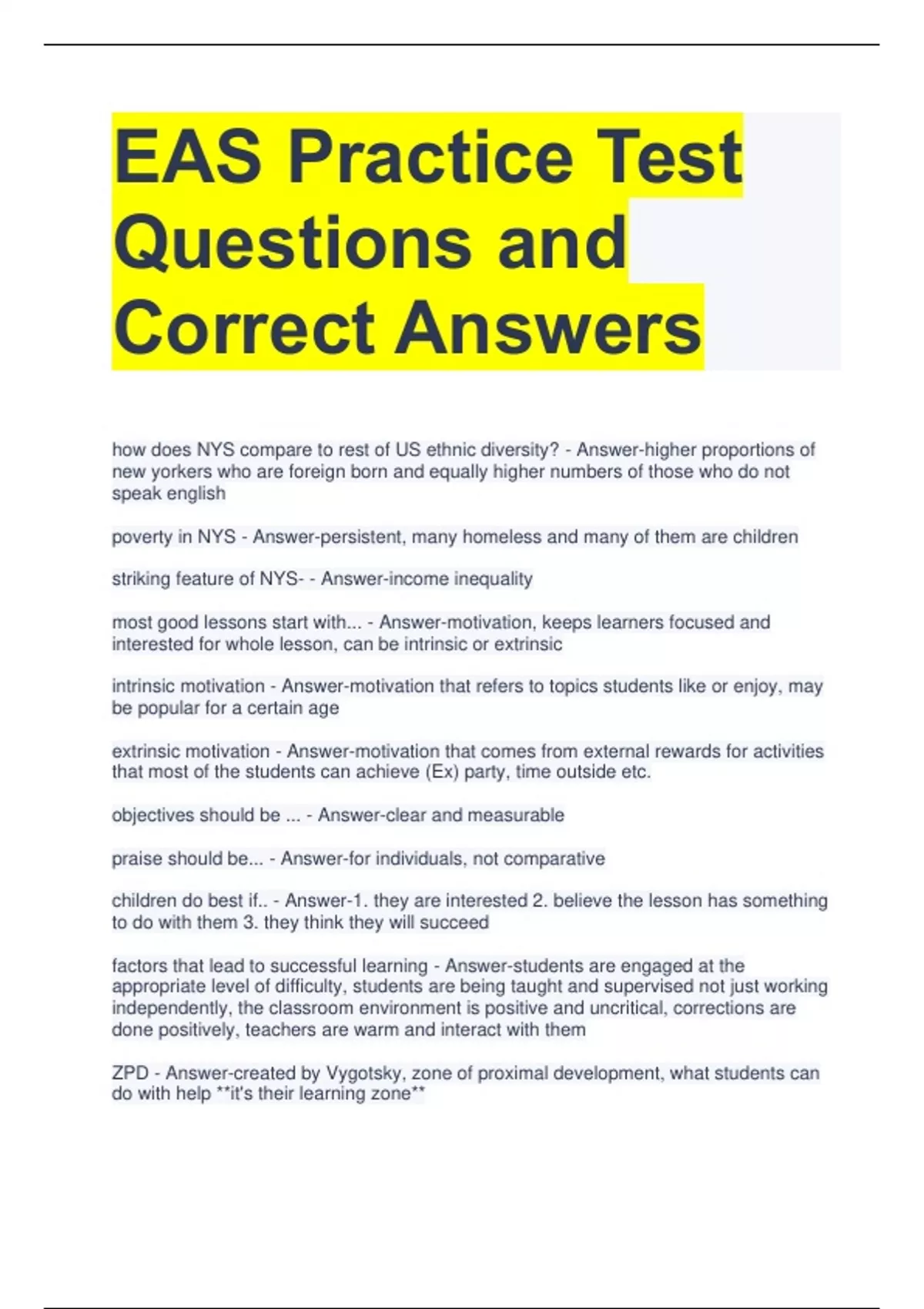 1 Exam (elaborations) EAS Practice Test Questions with Correct Answers 2 Exam (elaborations) EAS Practice 1 Exam Questions with Correct Answers 3 Exam (elaborations) EAS Chapter 26 Exam Questions and Answers All Correct 4 Exam (elaborations) EAS Study Guide Questions with Correct Answers