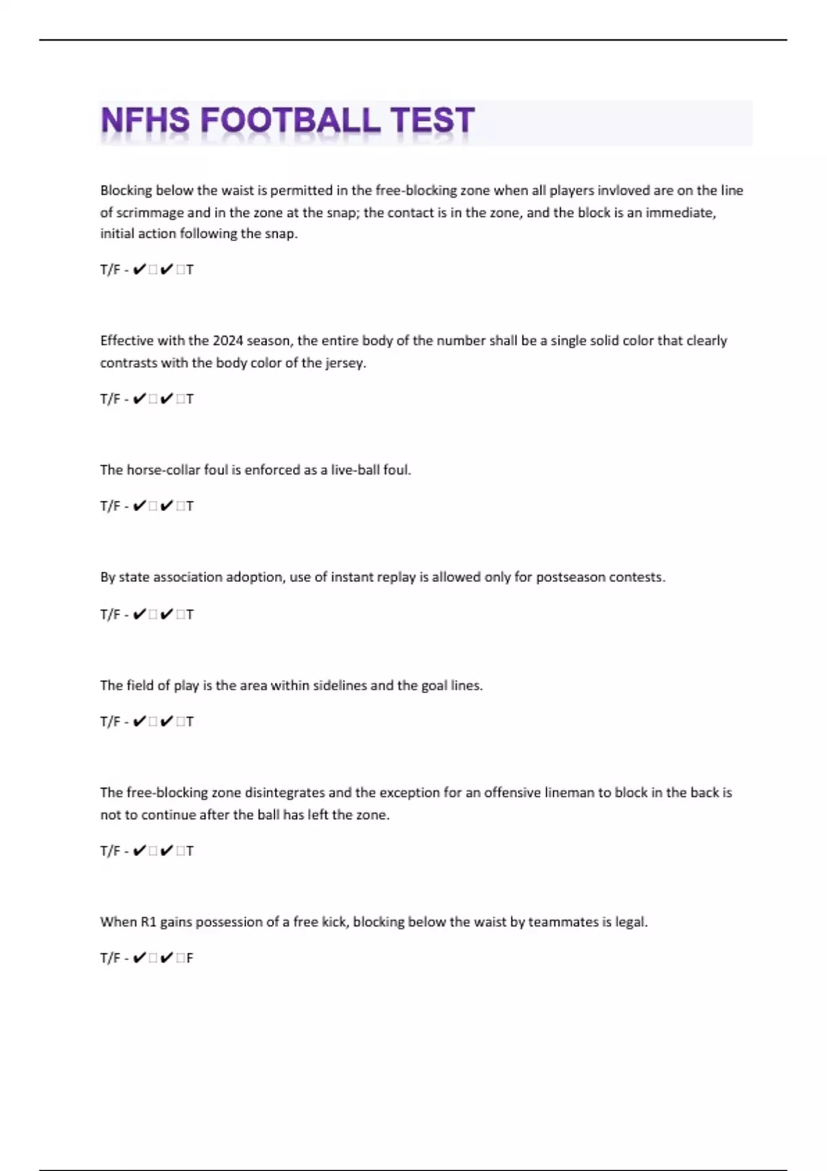 2024 NFHS Football Part II Test|100 test review Questions With Complete Solutions|35 Pages