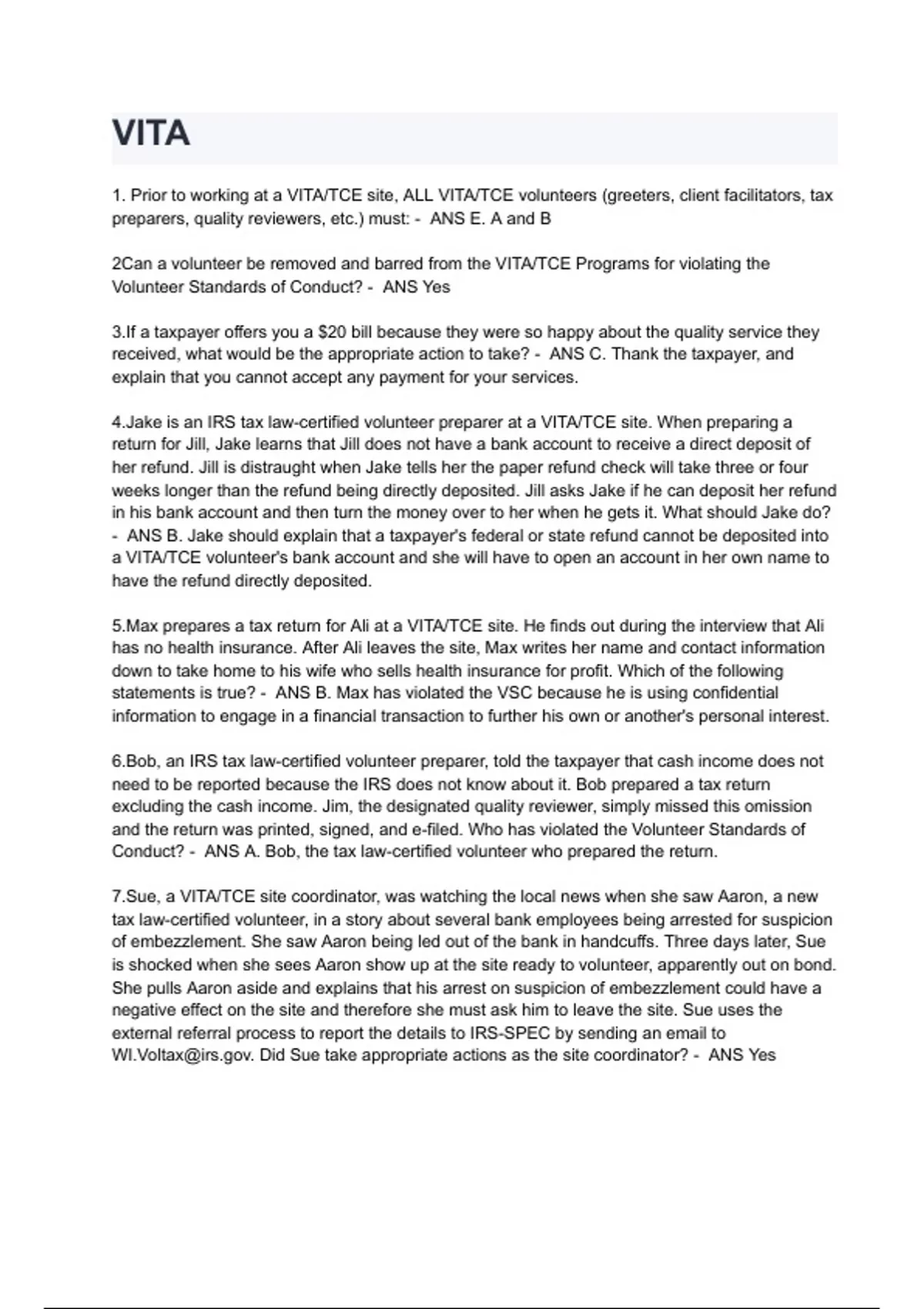 VITA Intake/ Interview Review Test Questions with complete solutions 2024.