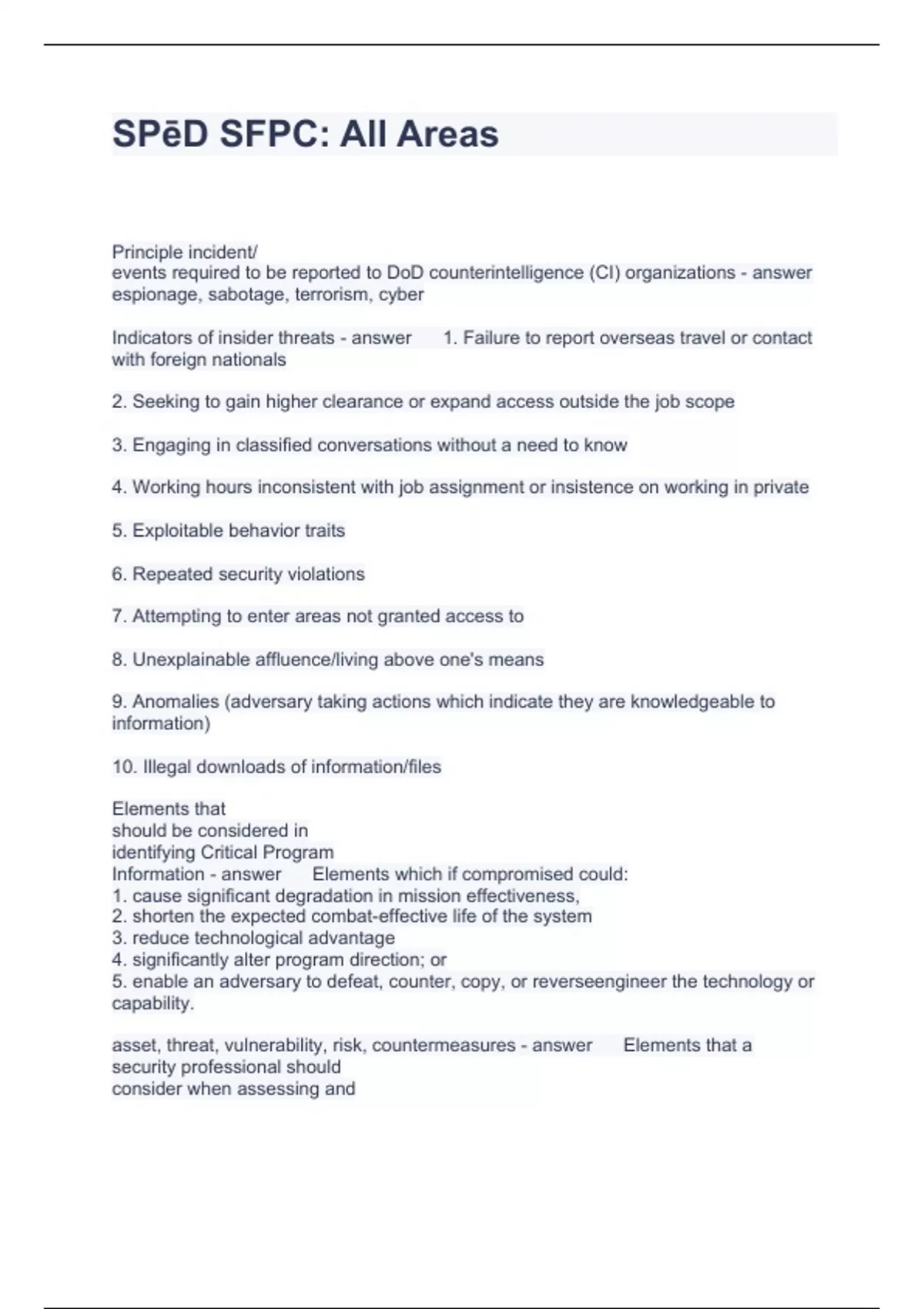 Exam (elaborations) CDSE SPeD SFPC QUESTIONS AND ANSWERS GRADED A+ Exam (elaborations) Derivative Rules Exam Questions and Answers 2024 Exam (elaborations) SFPC - General Security Test 1 Questions with correct Answers 2024 Exam (elaborations) SFPC - SPeD Study Set, SFPC Practice Test V2 test Questions and Answers Exam (elaborations) SFPC (
