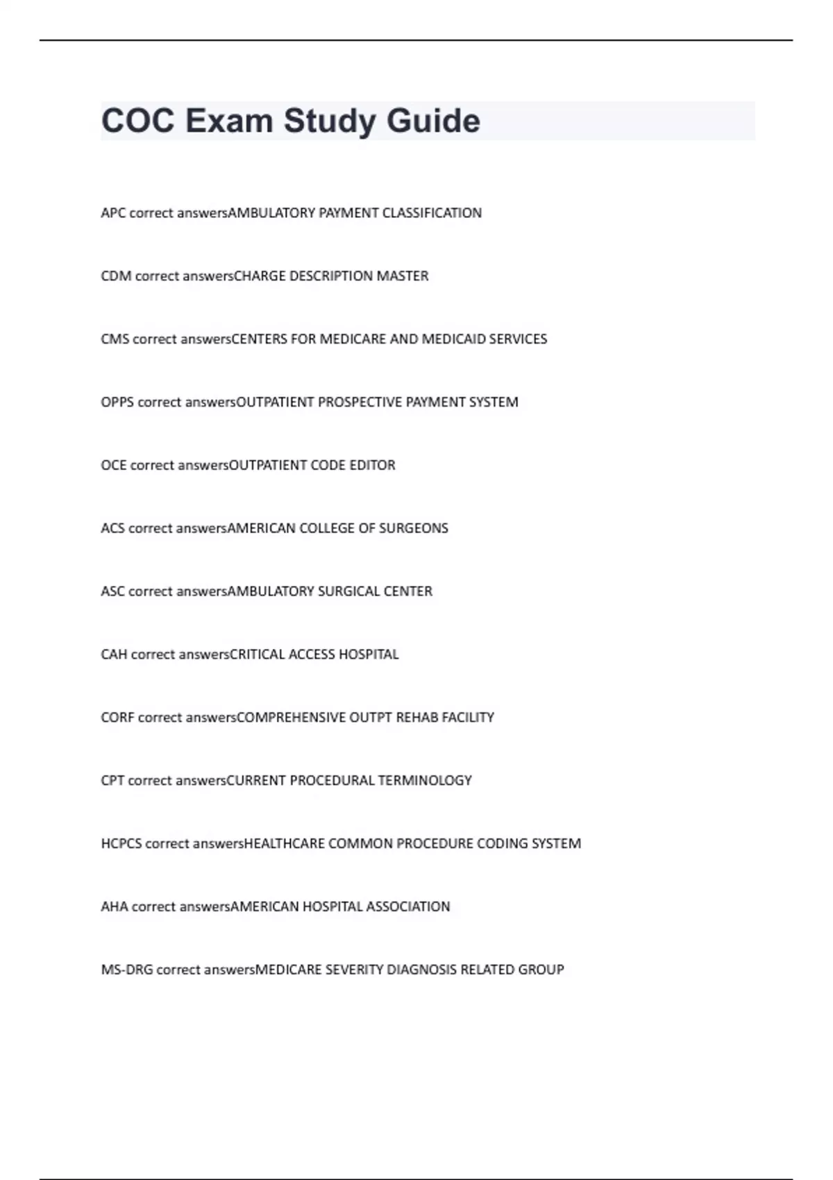 COC Exam Chapter 1 Terms with correct answers