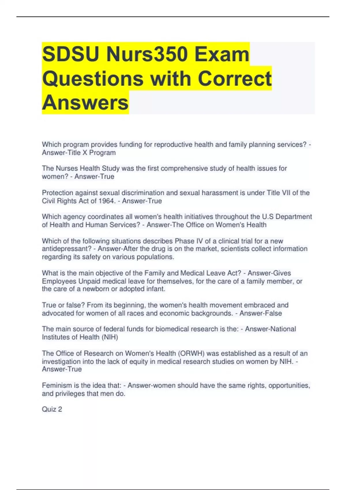 BUNDLE FOR NUR 350 Exam Questions and Correct Answers