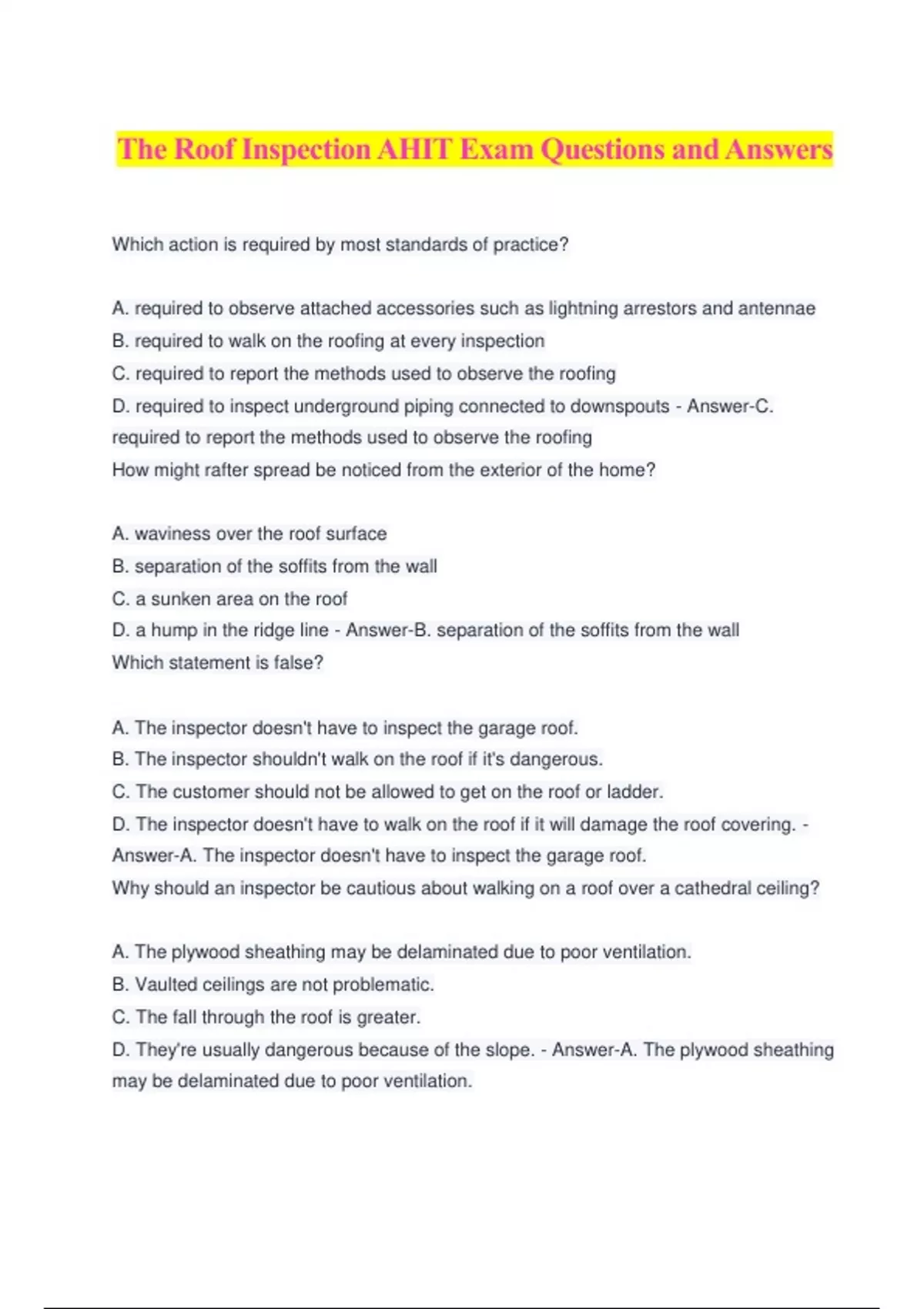 The Roof Inspection AHIT Exam Questions and Answers