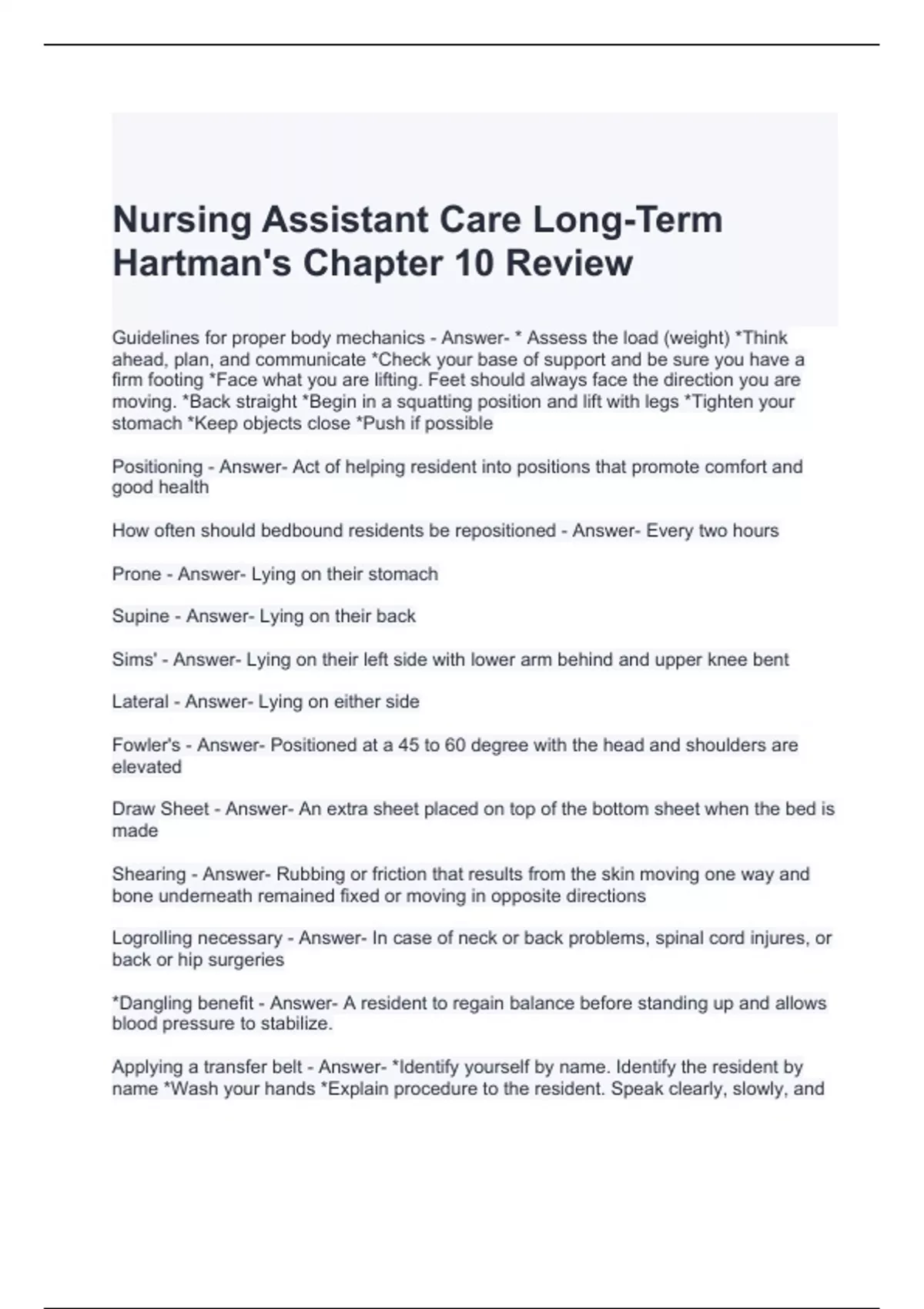 Nursing Assistant Care Long-Term Hartman's Chapter 10 Review 2024
