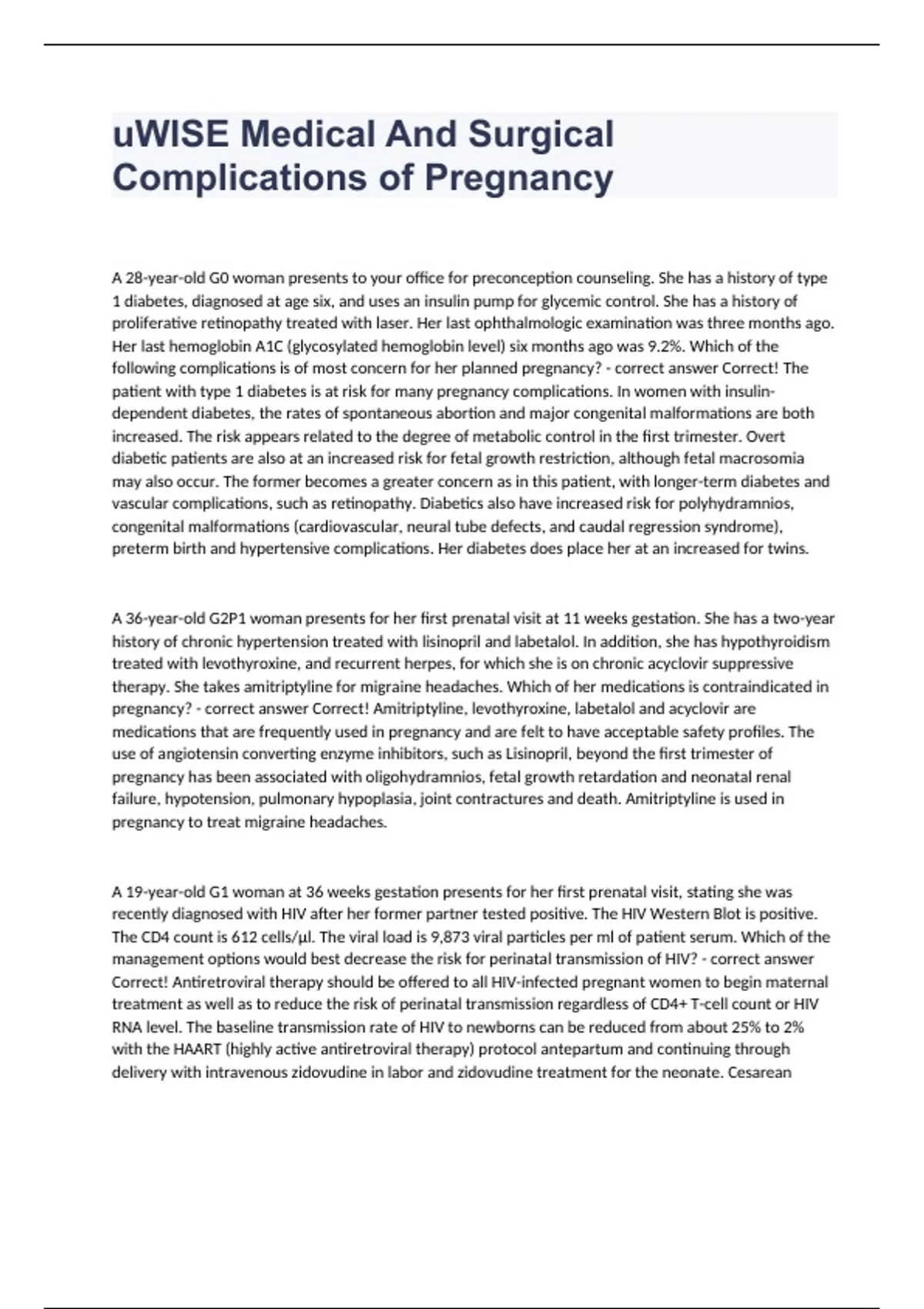 xam (elaborations) 17 Medical and Surgical Complications of Pregnancy. questions and answers already solved 2024 Exam (elaborations) Adolescent Pregnancy. questions and answers certified 2024 Exam (elaborations) Antepartum NCLEX questions and answers 100% correct 2024 Exam (elaborations) ATI complications of pregnancy case study questions and