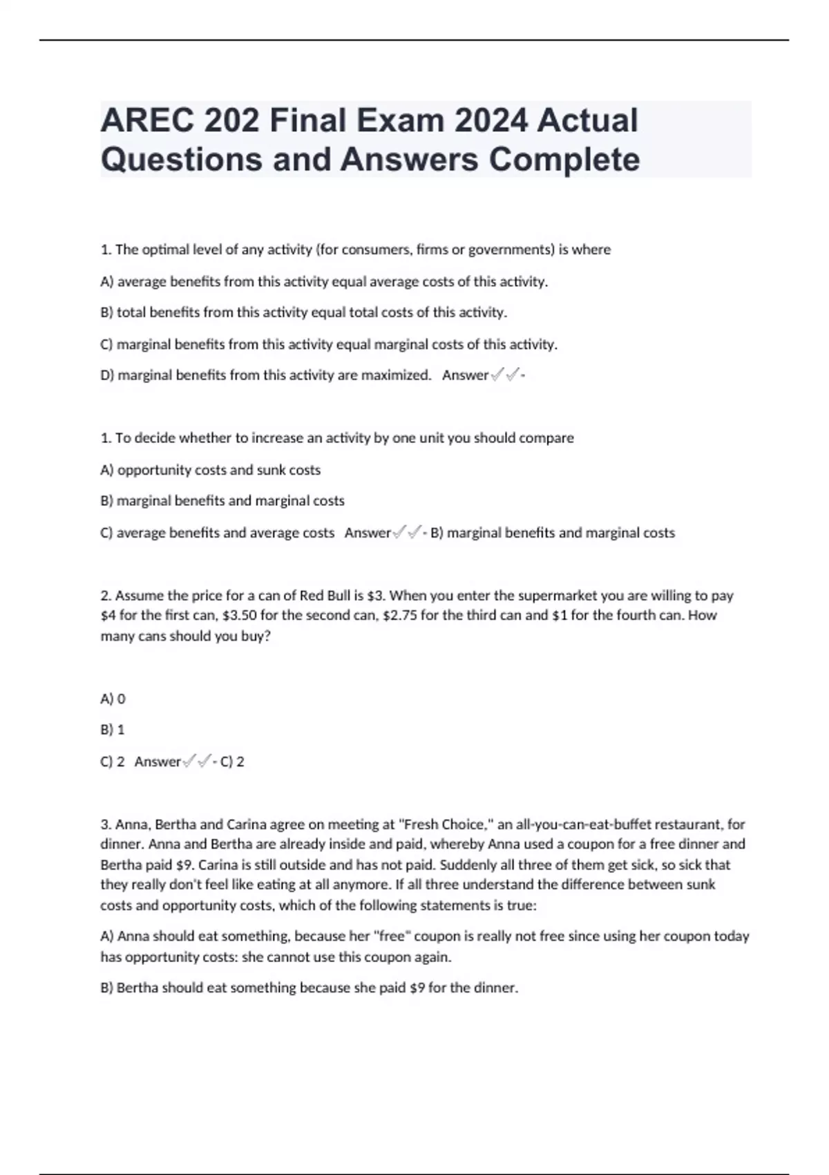 AREC 202 Final Exam 2024 Actual Questions and Answers Complete AREC 305 ~ FINAL EXAM 2024 WITH COMPLETE SOLUTION AREC exam updated questions and answers complete AREC 202 (Kroll) Final Exam Study Guide Actual Questions and Answers 2024 Passed