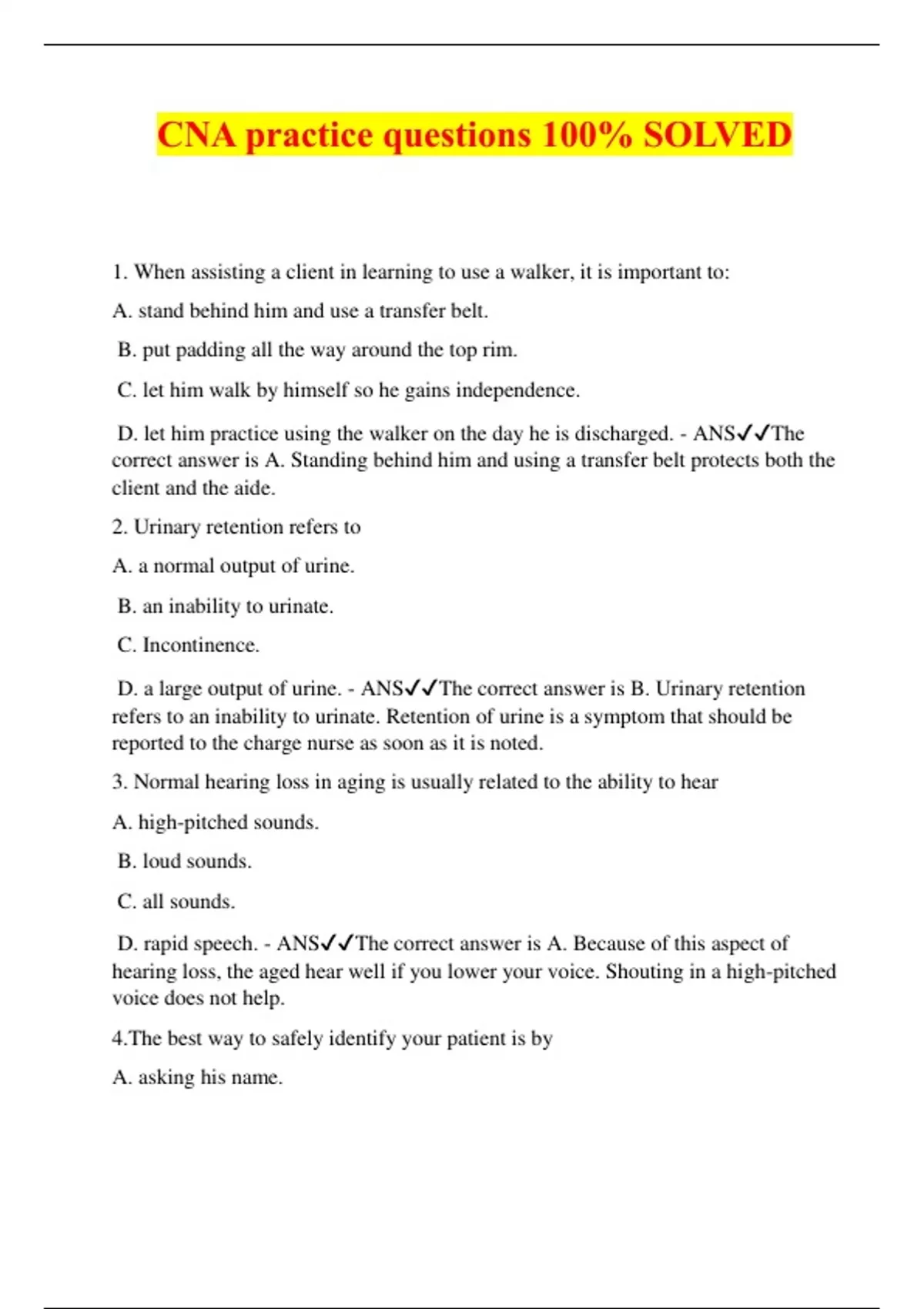 Package deal for CNA Exam Questions with 100% Correct Answers | Verified | Updated 2024