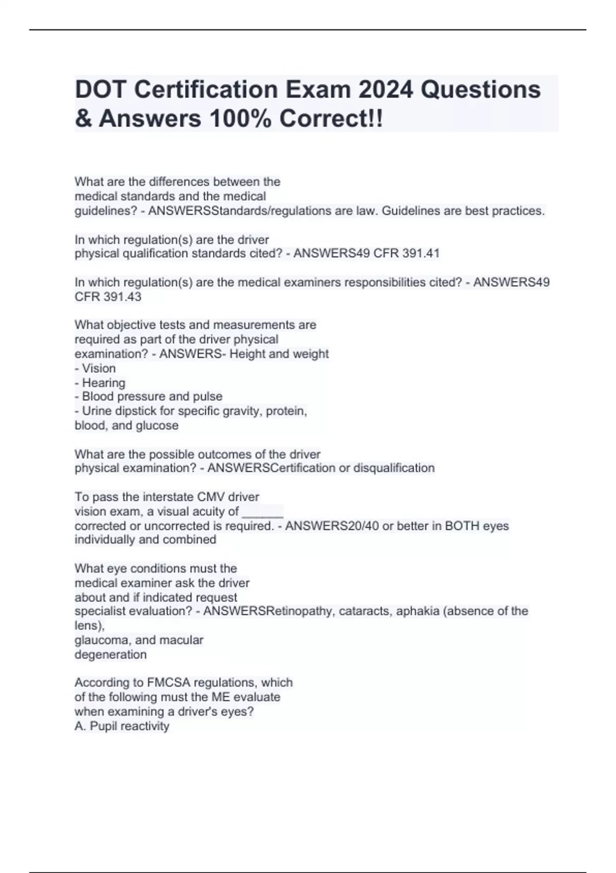 NRCME (DOT) Exam 2022 Questions & Answers 100% Correct!!