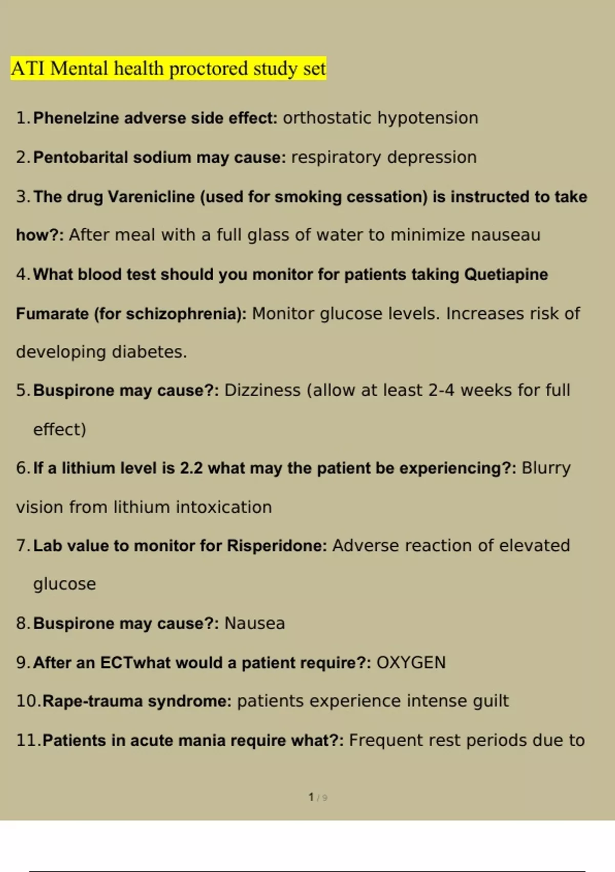 Mental Health HESI BUNDLED Mental Health HESI 1 Exam MENTAL HEALTH (PSYCH) HESI – FINAL EXAM PRACTICE QUESTIONS & ANSWERS VERIFIED 100%