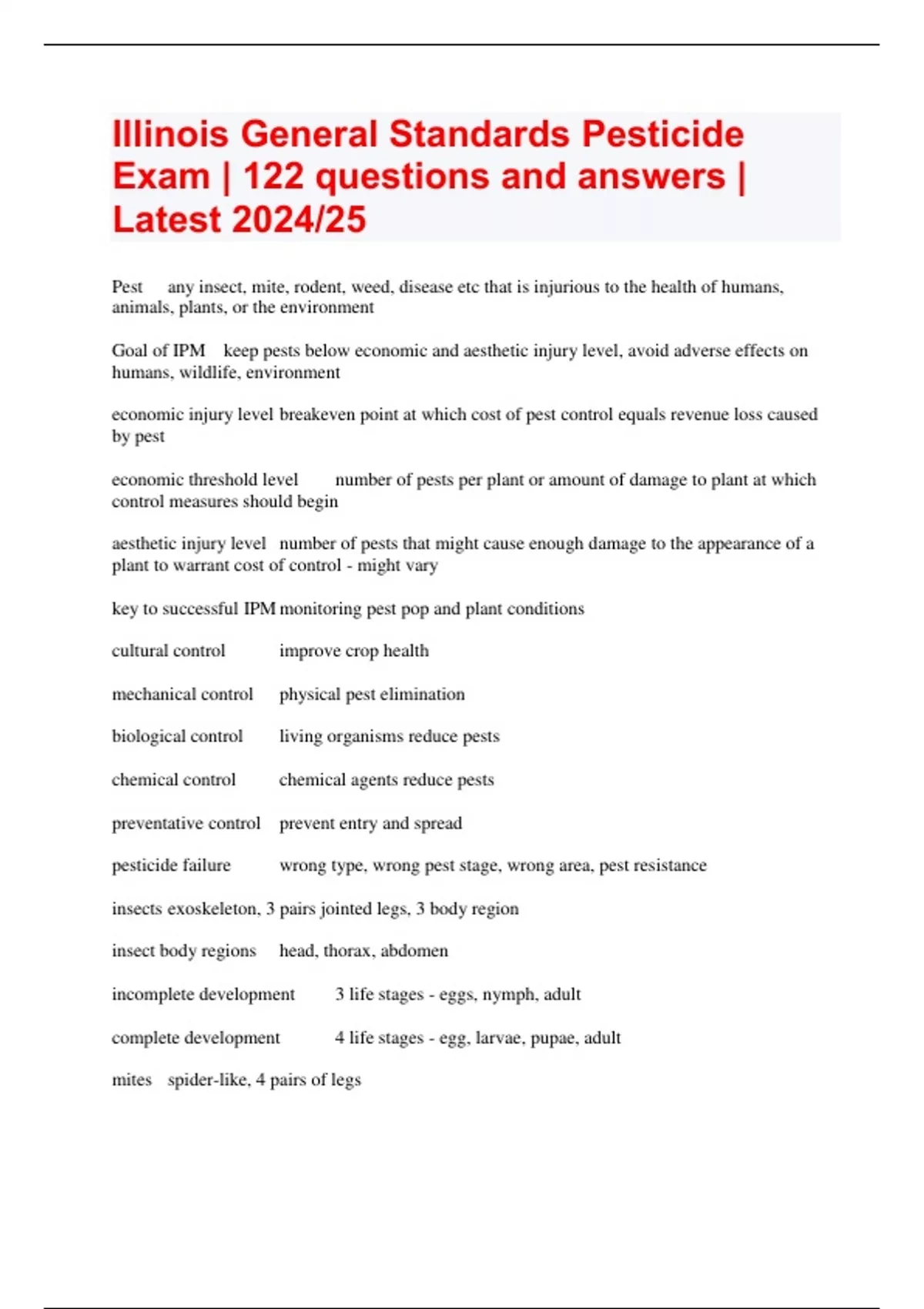 Exam (elaborations) Illinois pesticide general standards | Exam questions and answers | Latest 2 Exam (elaborations) General Standards and Right of Way Practice Test: Illinois Pesticide | Latest 2024/25 3 Exam (elaborations) Illinois Pesticide applicator exam | with complete solution | Updated 4 Exam (elaborations) Illinois Pesticide General Sta