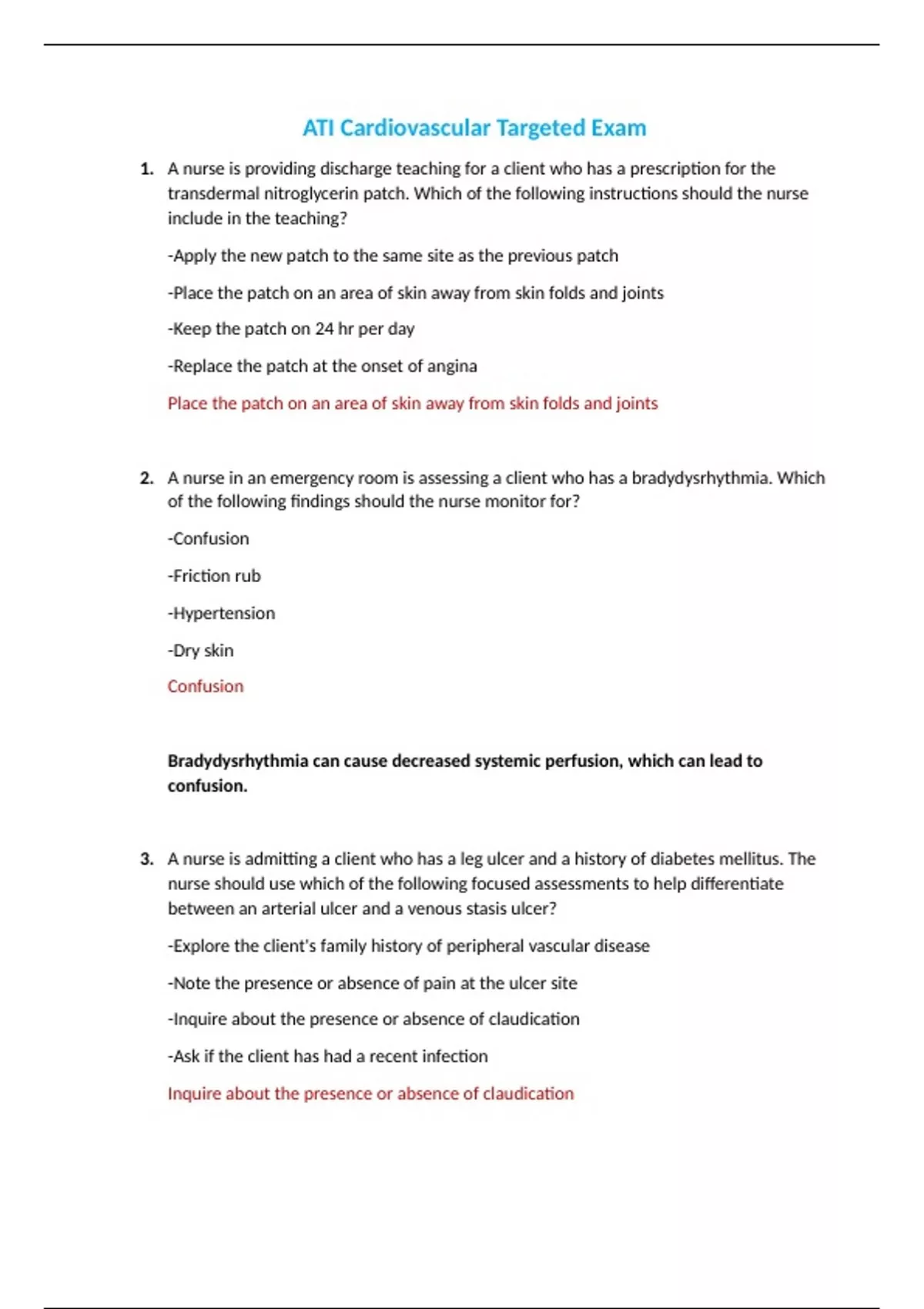 ATI Cardiovascular Targeted Exam