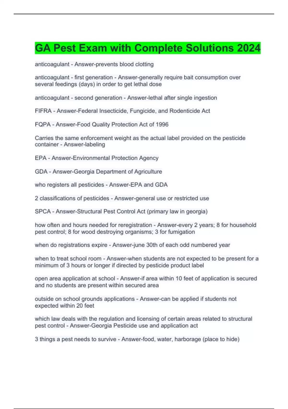 1 Exam (elaborations) GA Pest Control Employee Registration Manual Exam 2024 Graded A+ 2 Exam (elaborations) Georgia Pesticide Exam Prep - General 3 Exam (elaborations) GA Pesticide License exam 4 Exam (elaborations) GA Demonstration and Research Pest Control 5 Exam (elaborations) GA Pest Control Exam 2024 Solved 100% 6 Exam (elaborations) GPC