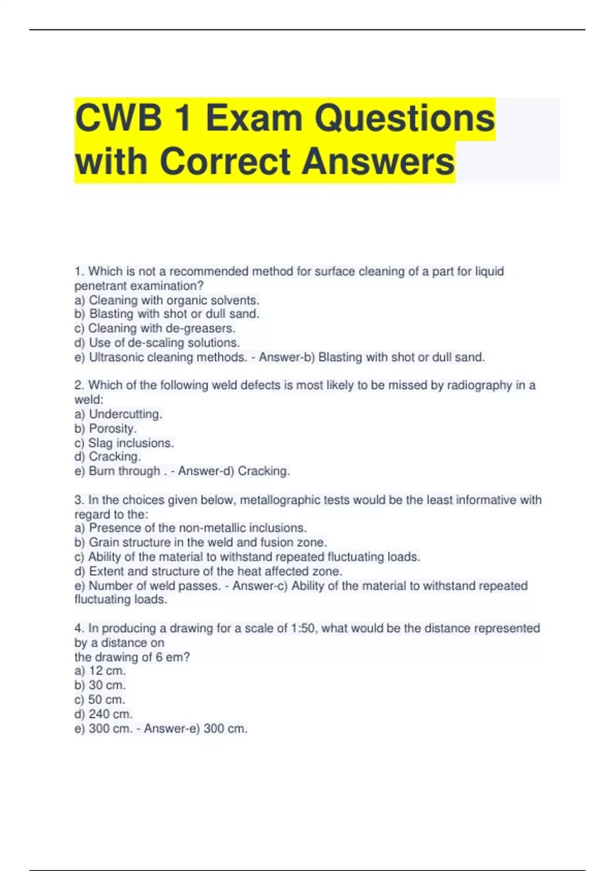 CWB Module 16 Questions with Correct Answers 2 Exam (elaborations) CWB Module 1 Exam Questions and Answers All Correct 3 Exam (elaborations) CWB Level II Exam Questions with Correct Answers 4 Exam (elaborations) CWB Level II Exam Questions and Correct Answers 5 Exam (elaborations) CWB Level 2 Test Questions with Correct Answers 6 Exam (elabora