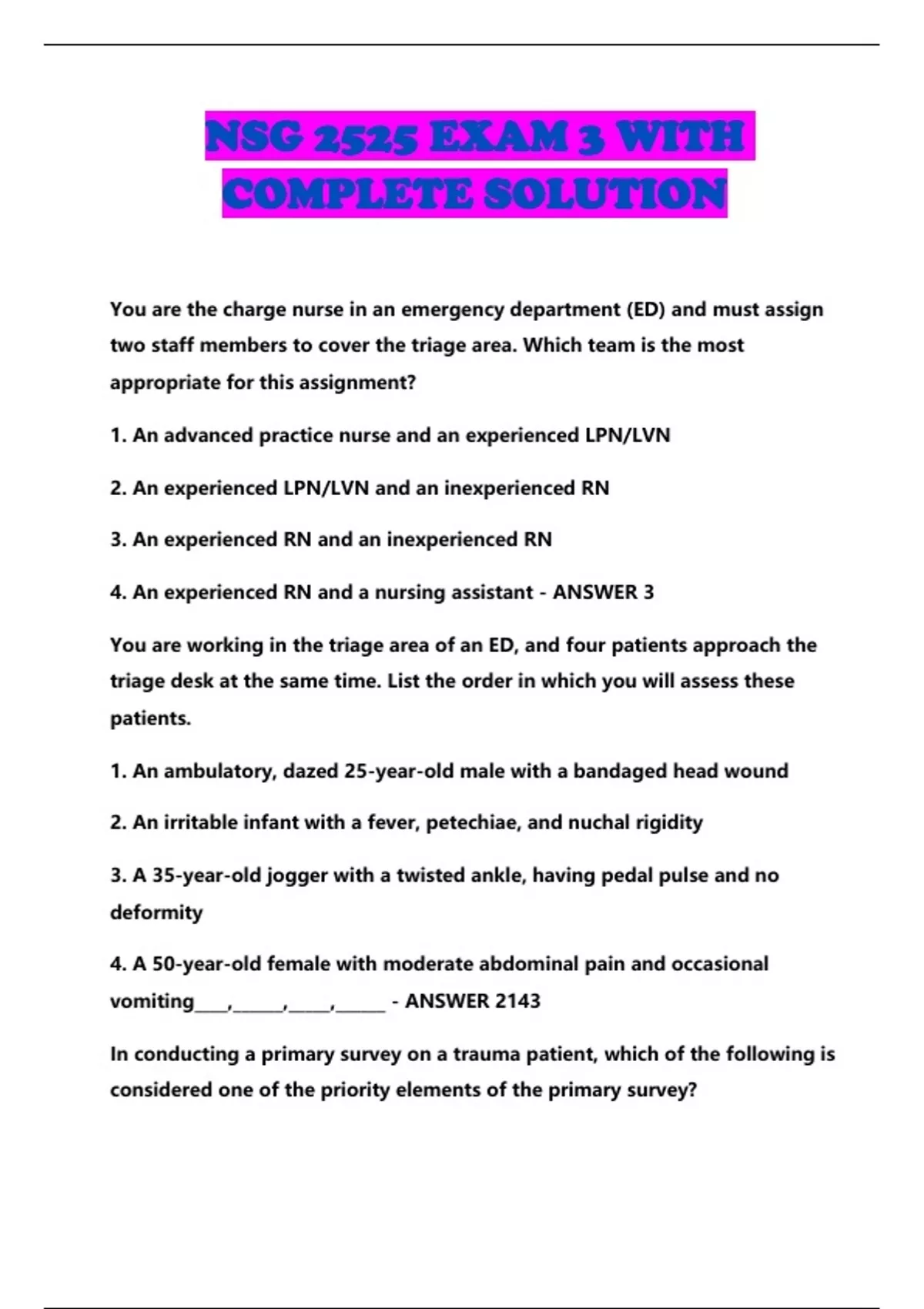 NSG 2525 BUNDLED EXAMS