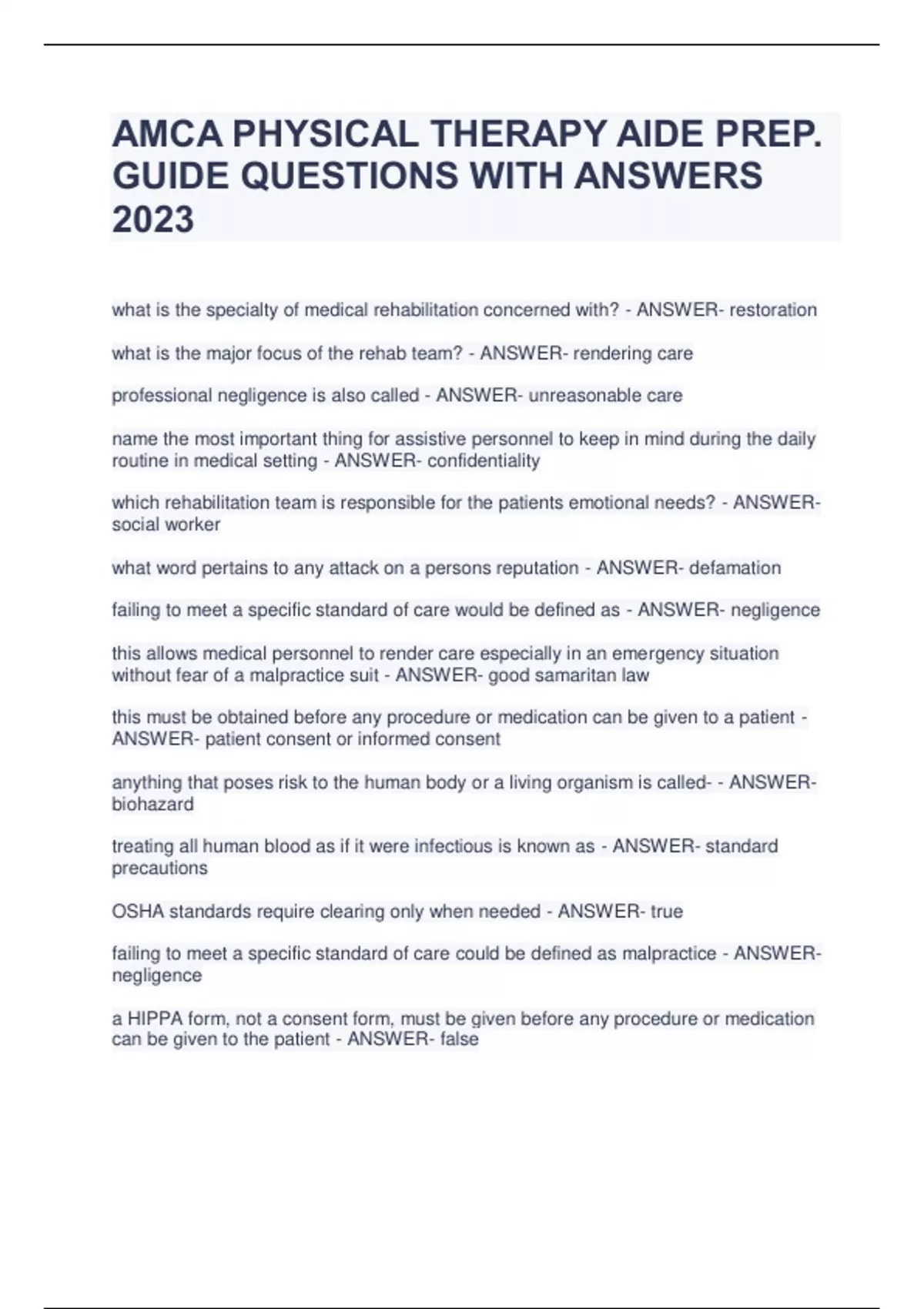 AMCA Exams (BUNDLE) Questions and Answers |Rated 100% Correct!!