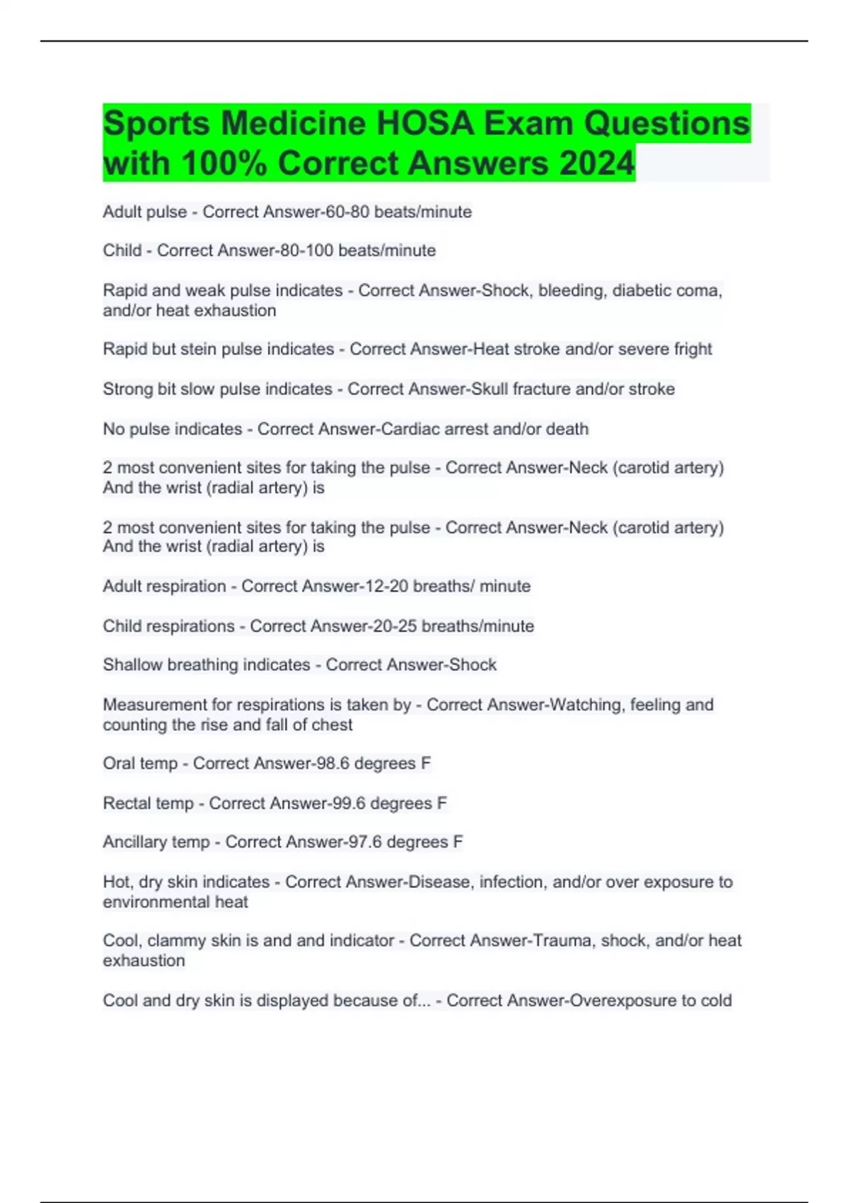 Package deal for Sports Medicine-HOSA Questions with 100% Correct Answers | Verified | Updated 2024