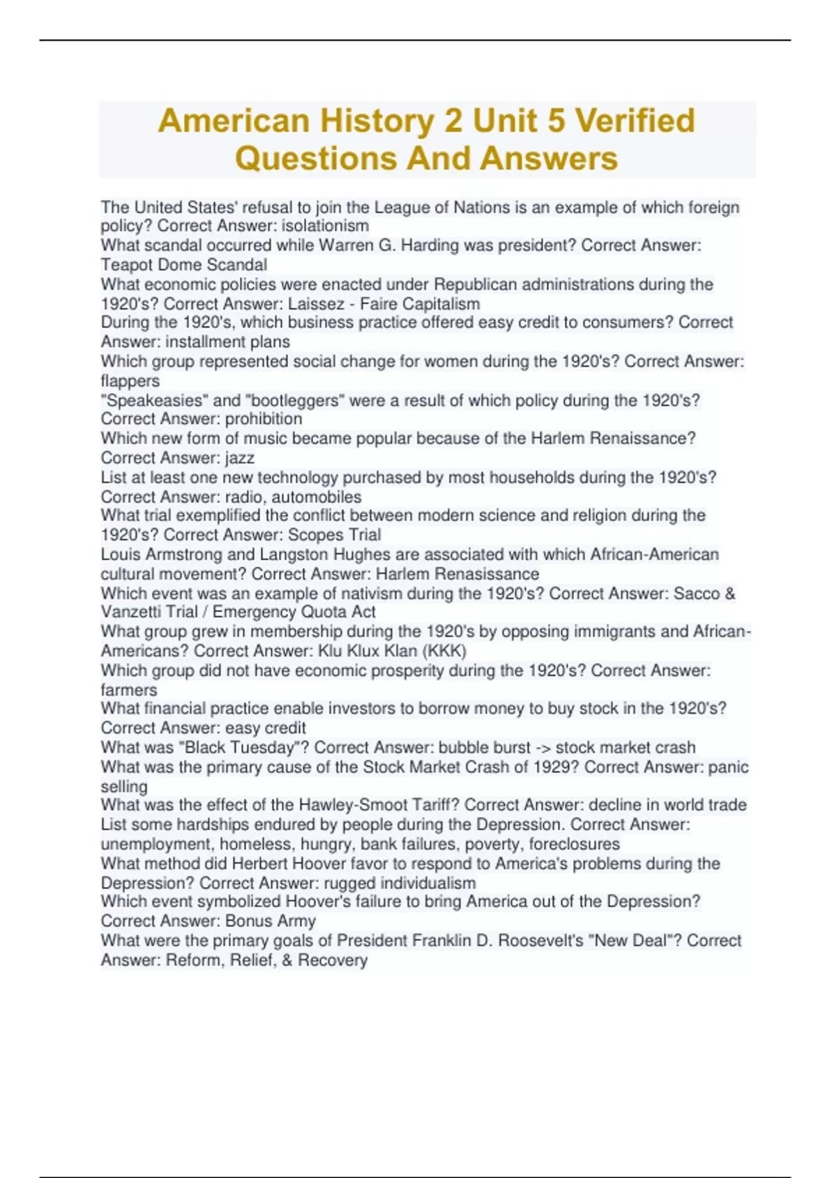 U.S. History Chapter 5: Growth And Division Verified Questions And Answers