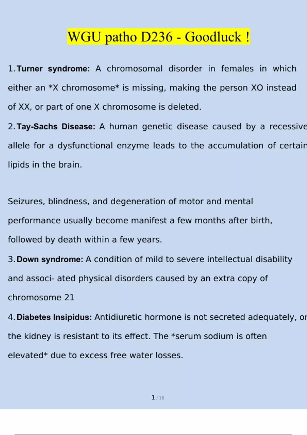WGU Pathophysiology D236 Exam BUNDLED WGU D236 Pathology Pre-Assessment Exam Q&A Latest Update 2024