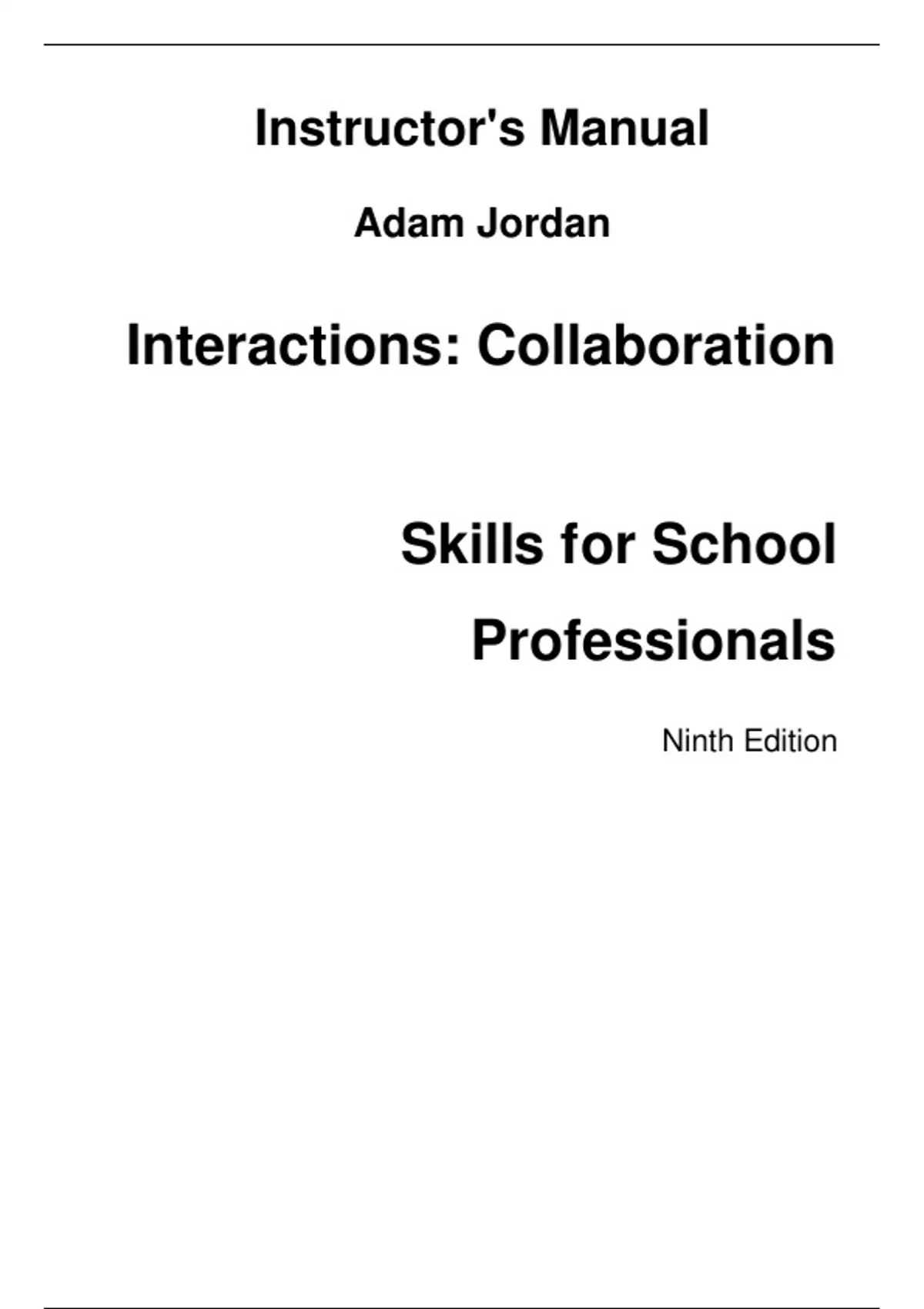 Instructor Manual With Test Bank For Interactions Collaboration Skills for School Professionals 9th Edition By Marilyn Friend (All Chapters, 100% Original Verified, A+ Grade) Instructor Manual With Test Bank For Interactions Collaboration Skills for School Professionals 9th Edition By Marilyn Friend (All Chapters, 100% Original Verified, A+ Grad