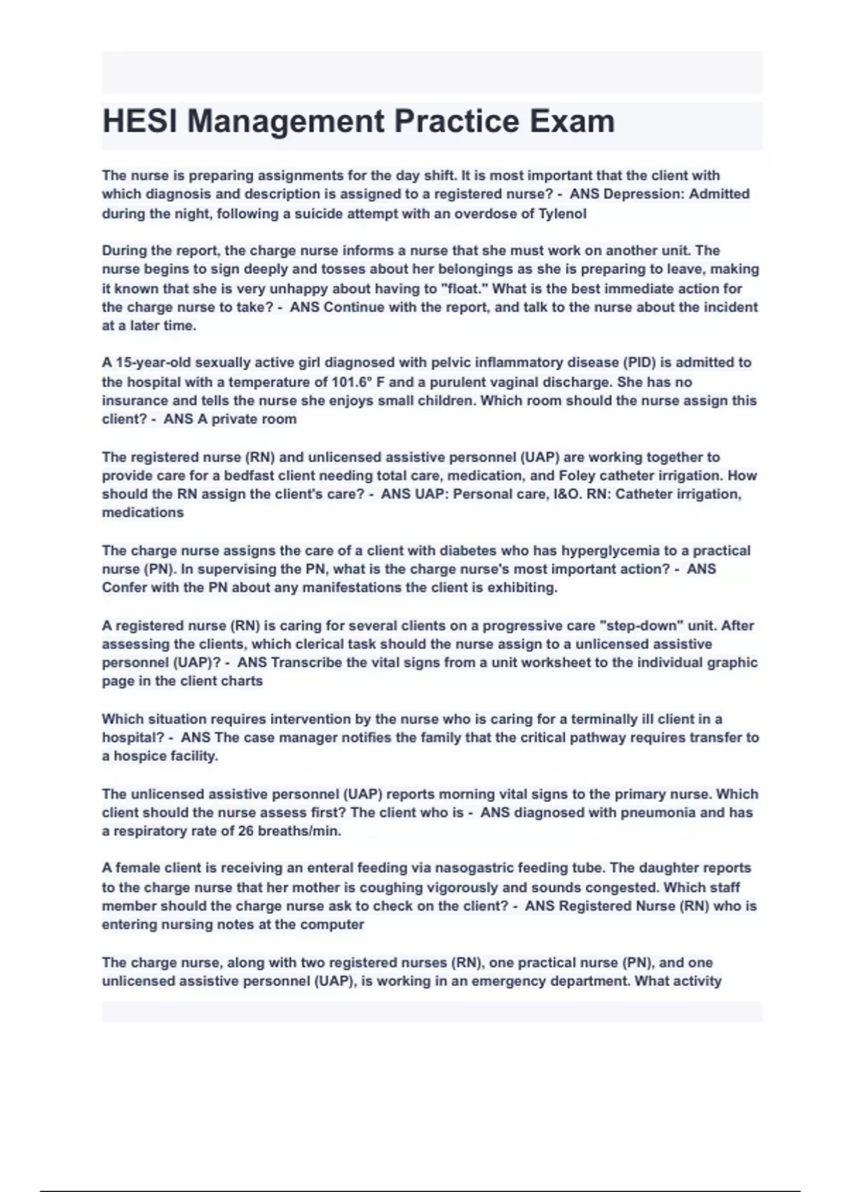 HESI Management Practice Exam Questions with correct Answers 2024( A+ GRADED 100% VERIFIED).