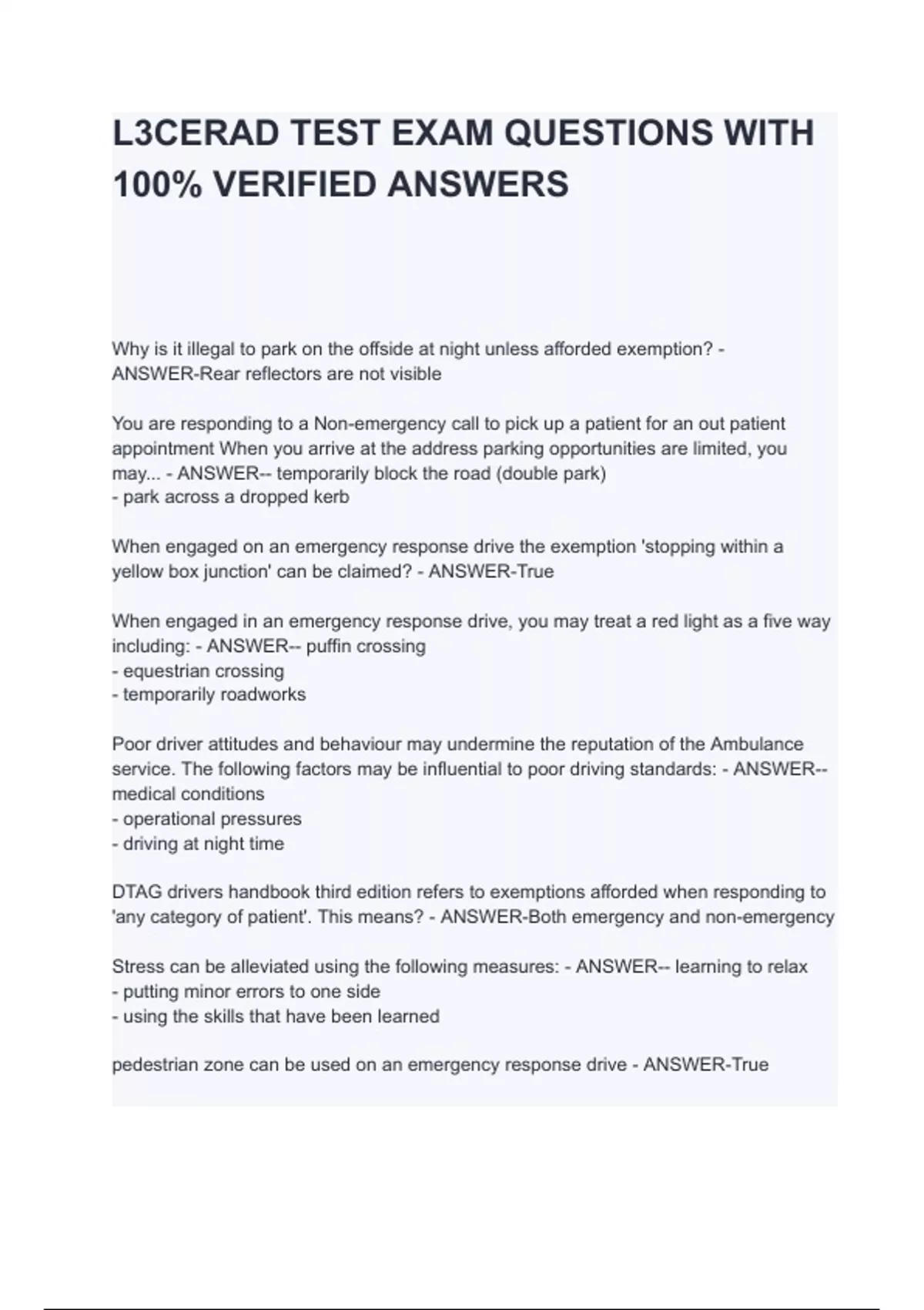 L3CERAD TEST EXAM QUESTIONS WITH 100% VERIFIED ANSWERS