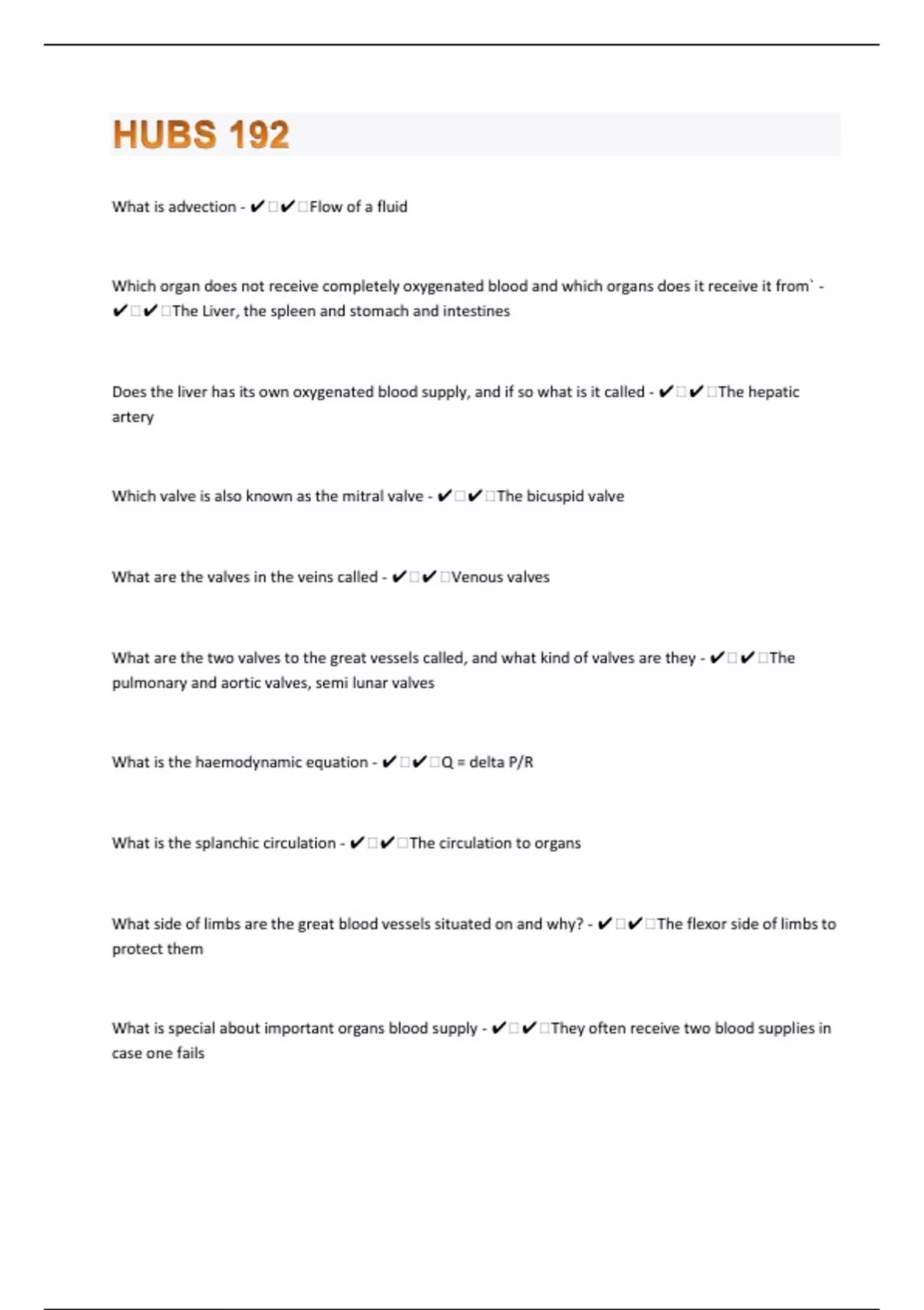 HUBS 192|198 Questions with 100% Correct Answers | Verified | Latest Update