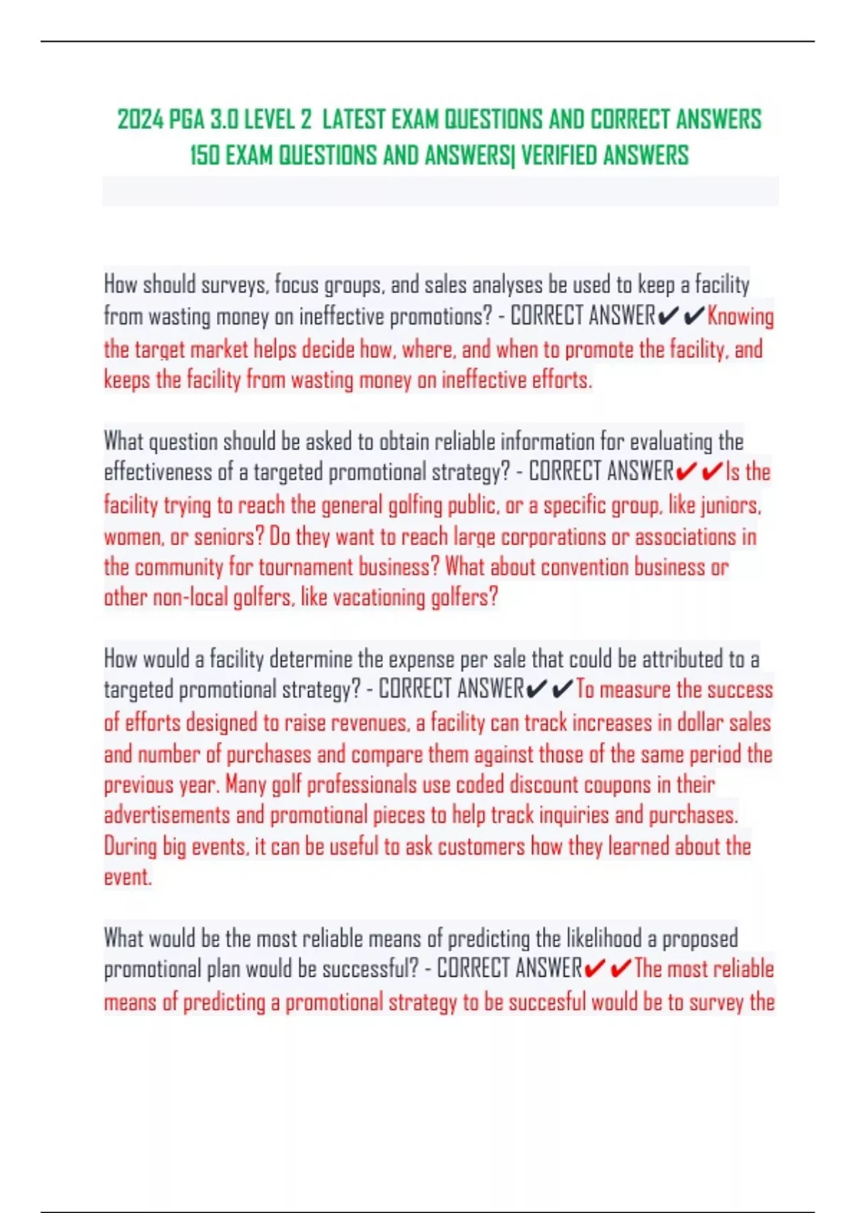 PGA PGM LEVEL 1 3.0 TEACHING AND COACHING EXAM (ANSWERED) COMPLETE SOLUTION 2 Exam (elaborations) PGA 3.0 LEVEL 2 STUDY GUIDE EXAM GOLF OPS LATEST PRE- EXAM 300+QUESTIONS AND CORRECT ANSWERS|AGRADE 3 Exam (elaborations) PGA 3.0 LEVEL 2 STUDY GUIDE EXAM GOLF OPS LATEST PRE- EXAM 300+QUESTIONS AND CORRECT ANSWERS|AGRADE 4 Exam (elaborations) 2024