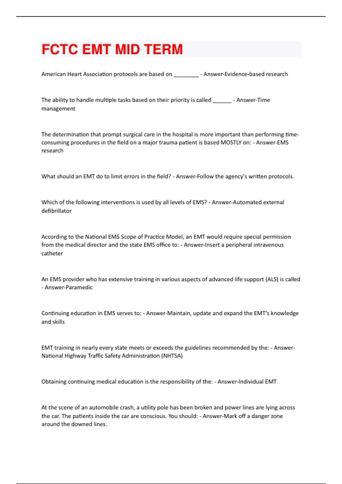 FCTC EXAM PACKAGEDEAL WITH COMPLETE SOLUTIONS ALREADY PASSED!!