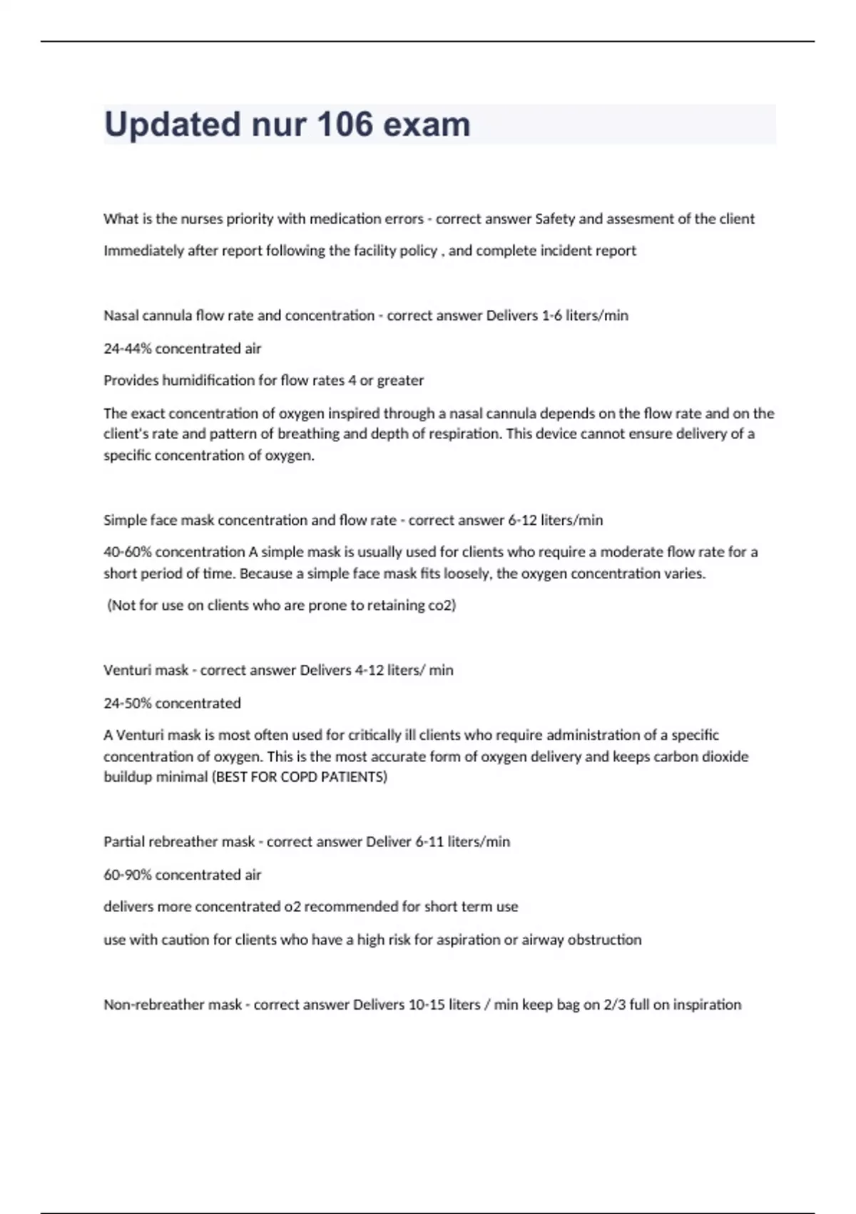 NUR 106 Exam Review Questions And Correct Answers 2024.