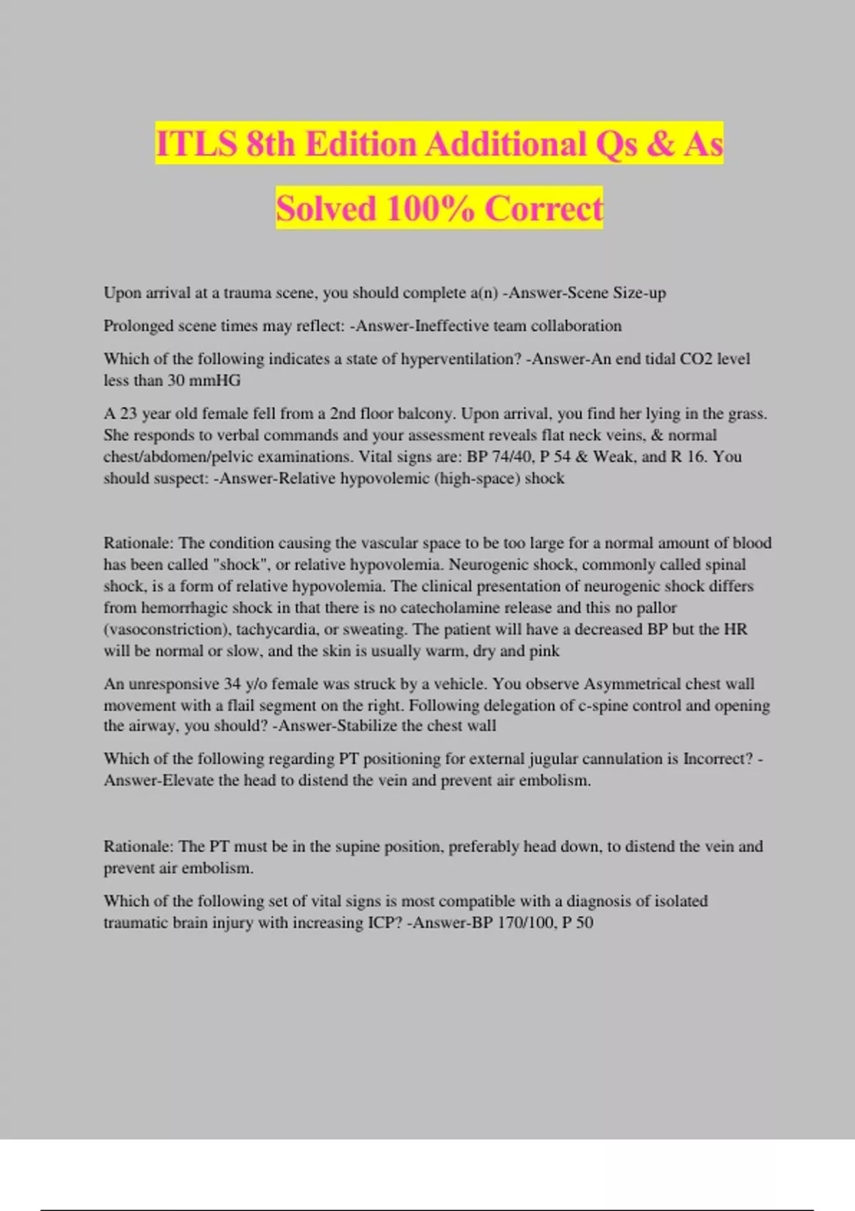 ITLS 8th Edition Additional Qs & As Solved 100% Correct