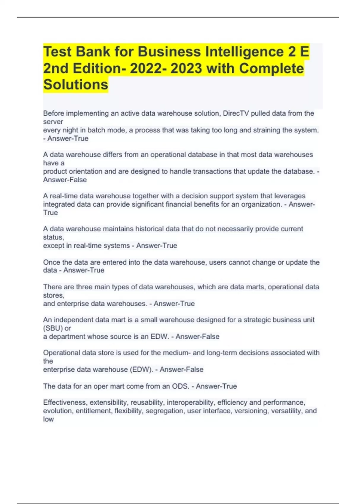 Test Bank Exam for Business Analytic Exam Bundle (Correct Answers)