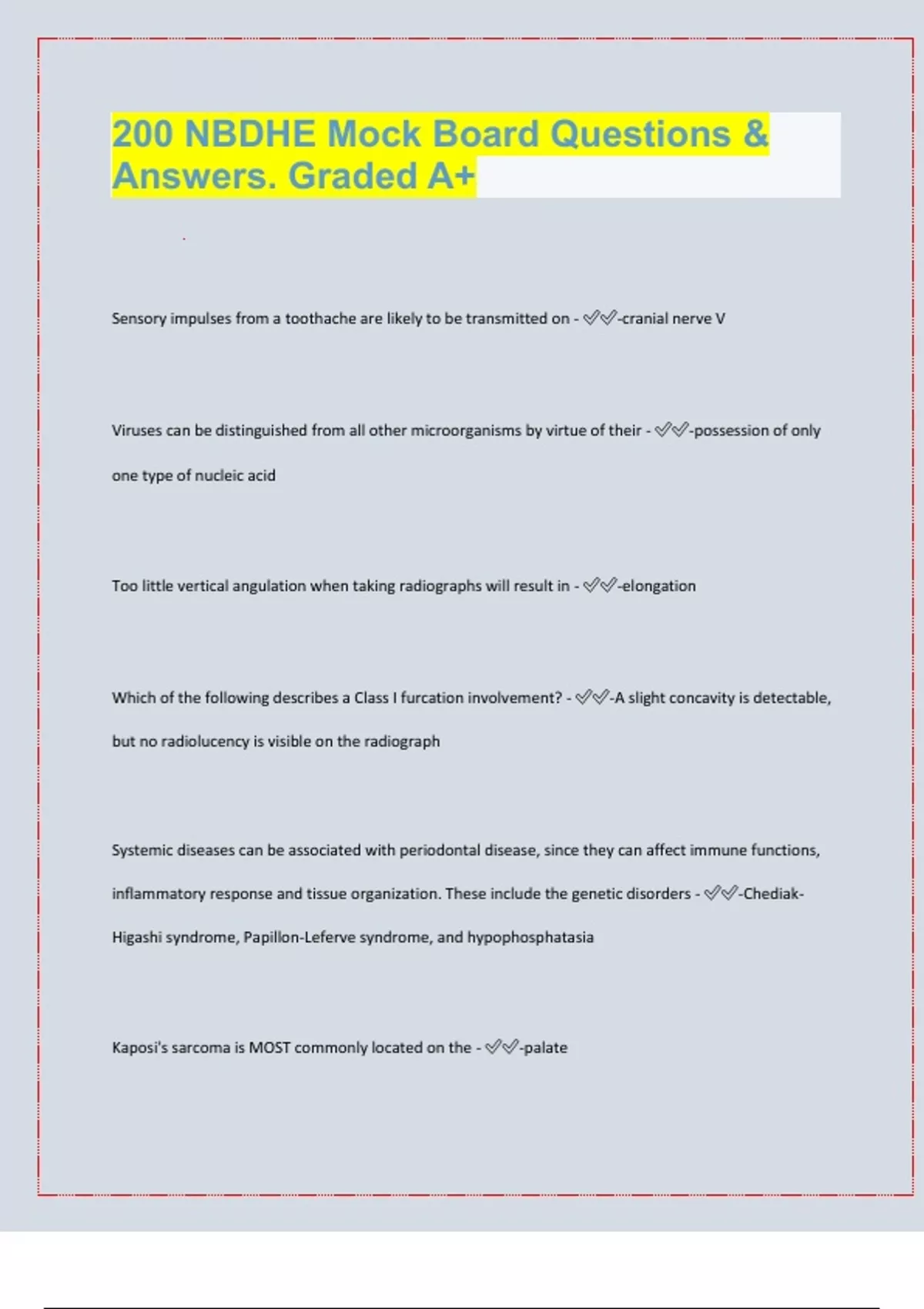 200 NBDHE Mock Board Questions & Answers. Graded A+