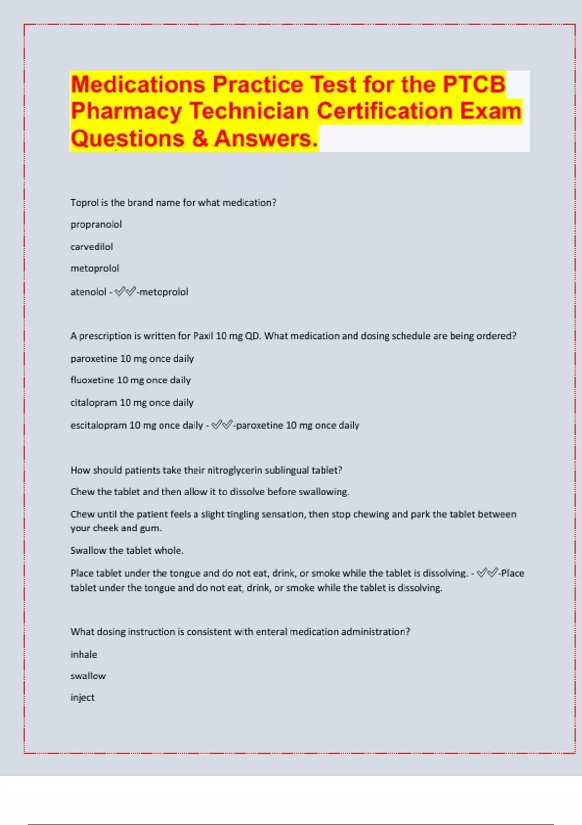 /LATEST UPDATES, 2024/25/ EXAMS PREDICTION PAPER/Medications Practice Test for the PTCB Pharmacy Technician Certification Exam Questions & Answers.